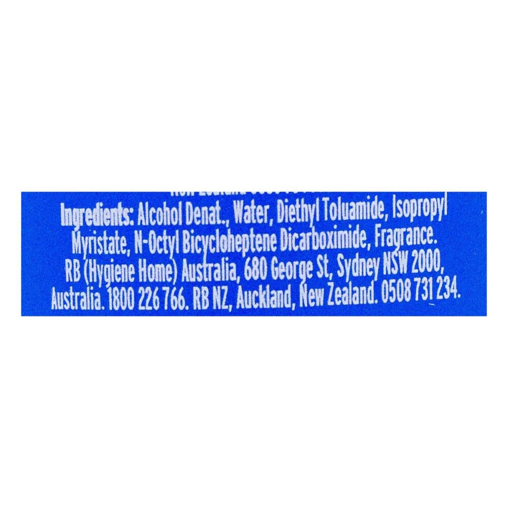 Alcohol Denat., Water, Diethyl Toluamide, Isopropyl Myristate, N-Octyl Bicycloheptene Dicarboximide, Fragrance (Amyl Cinnamal, Hydroxycitronellal, Isoeugenol, Citronellol, Coumarin, Geraniol, Limonene, Linalool).