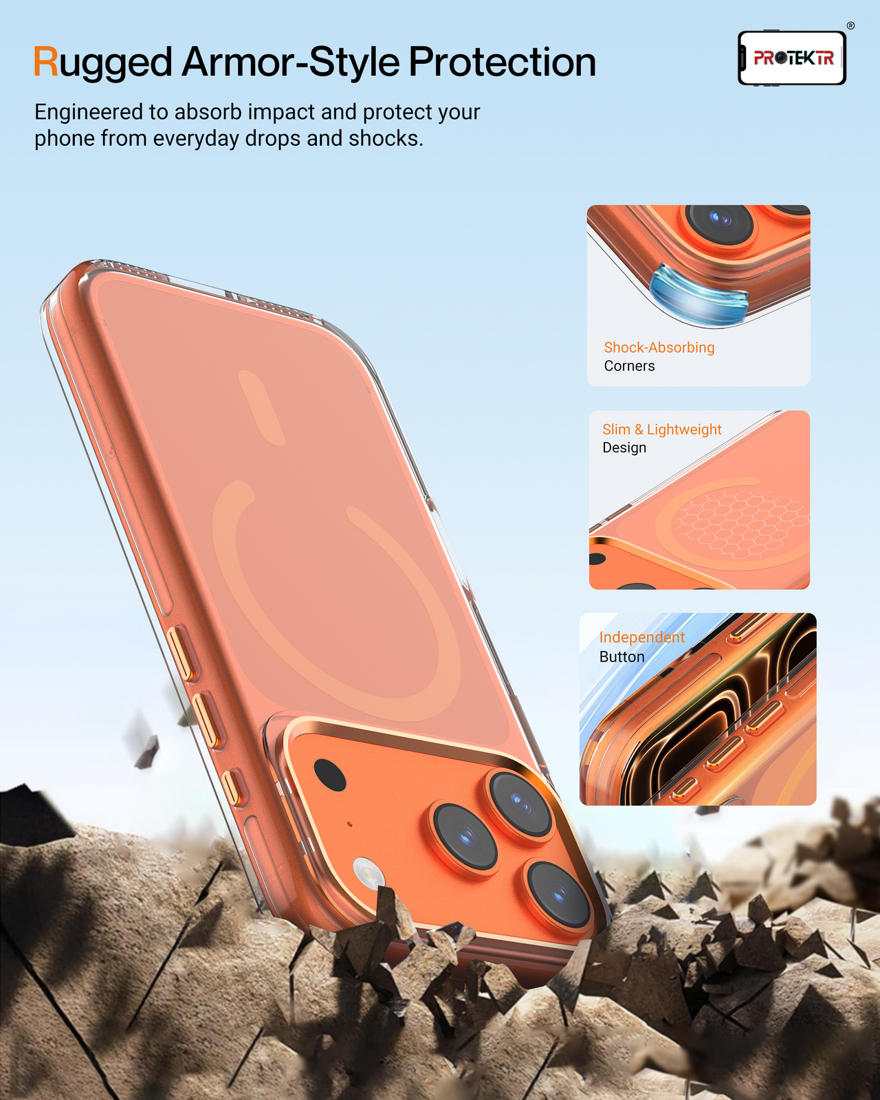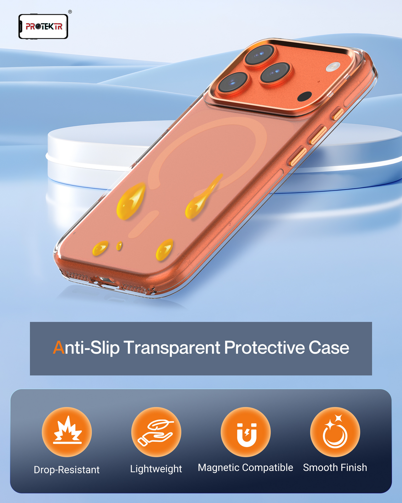 • 1 × PROTEKTR Amber Snap MagCase (Orange Clear)