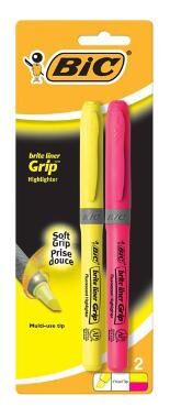 BIC Brite Liner Grip Highlighters | Assorted | Pack of 2