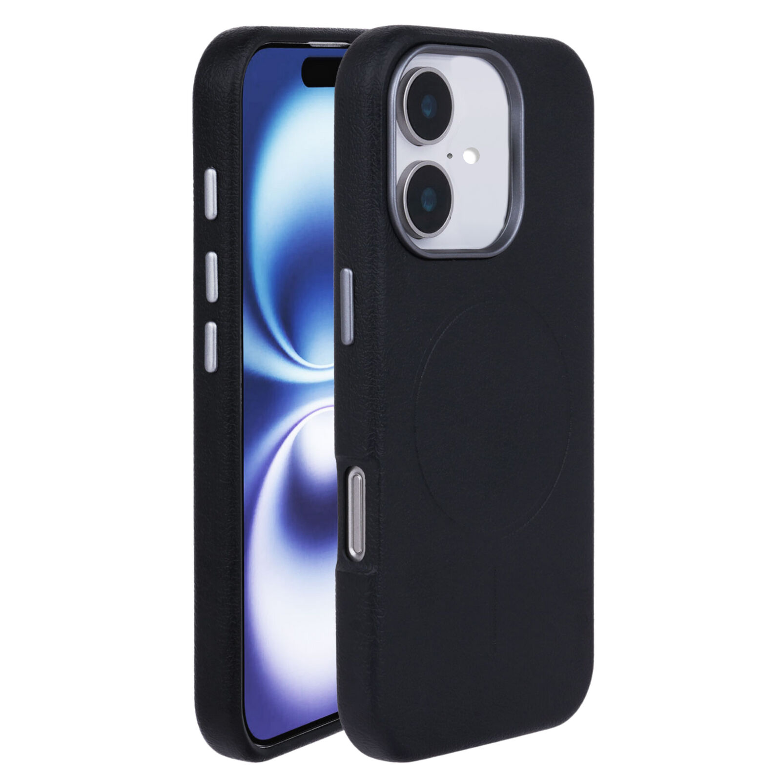 The Black MagSafe Case for iPhone 16 combines a sleek leather-texture finish with a durable hard shell core for 3-in-1 protection. Its deep matte black tone adds a bold, timeless aesthetic while resisting fingerprints for a cleaner, more refined look. Comes complete with a premium 9D screen guard for total device defense.