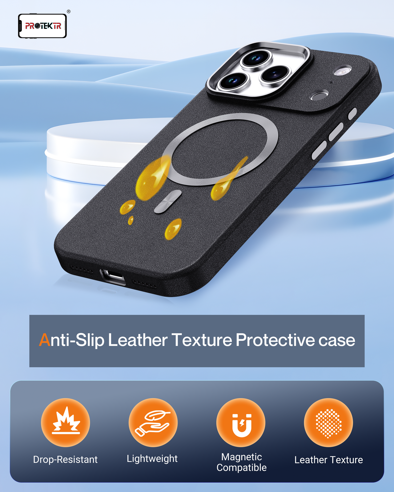 The built-in magnetic ring ensures reliable attachment to MagSafe devices while supporting wireless charging without removing the case. Its textured surface improves grip and handling, helping reduce slips while maintaining a slim and modern profile.