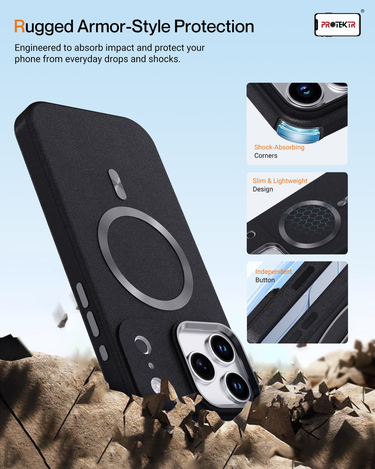 MagSafe Magnetic Support – Integrated magnetic ring ensures perfect alignment with MagSafe chargers and accessories.