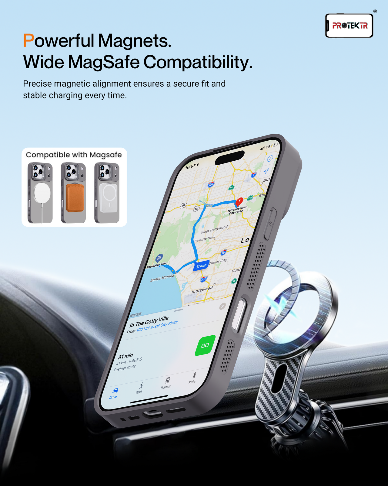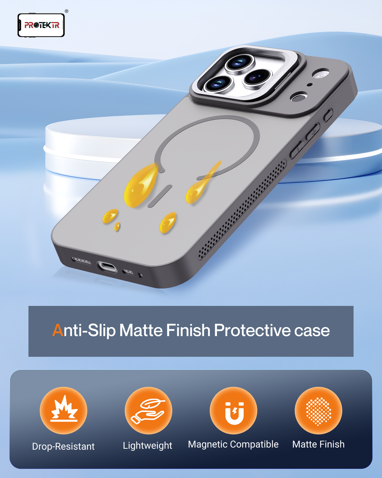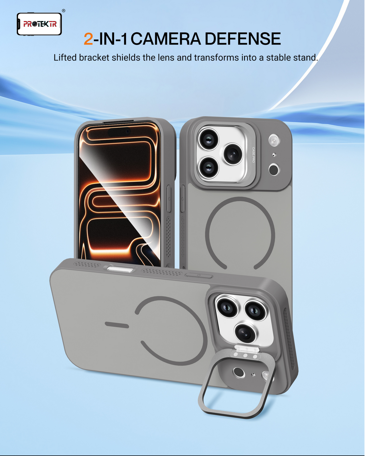 Engineered with strong N52 magnetic alignment, the case ensures reliable compatibility with MagSafe chargers and accessories while supporting wireless charging. The foldable metal camera bracket doubles as a sturdy kickstand, allowing convenient hands-free viewing for videos, calls, or browsing.