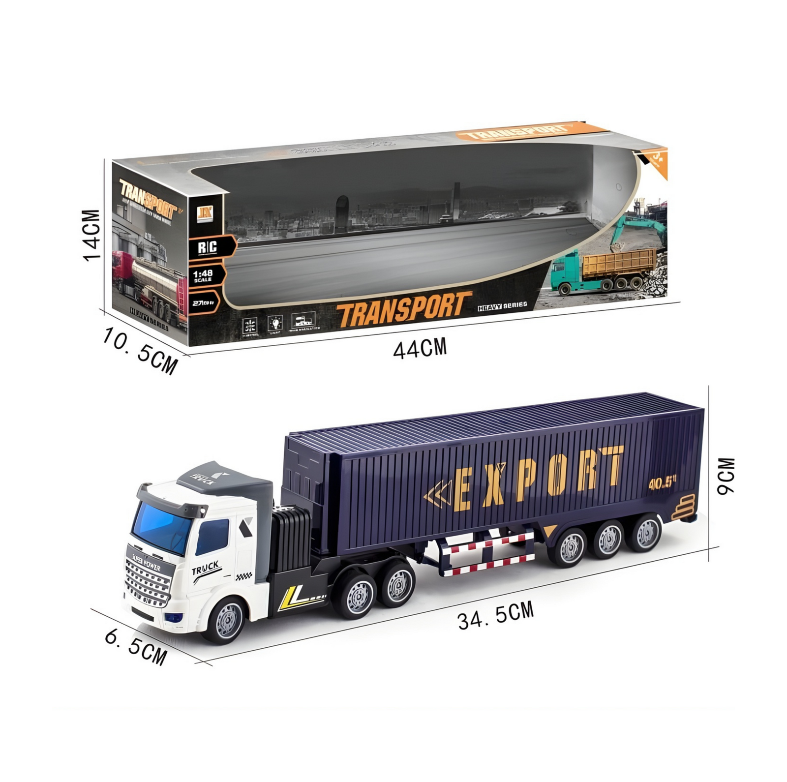 • Realistic 1:48 scale transport truck with detachable trailer