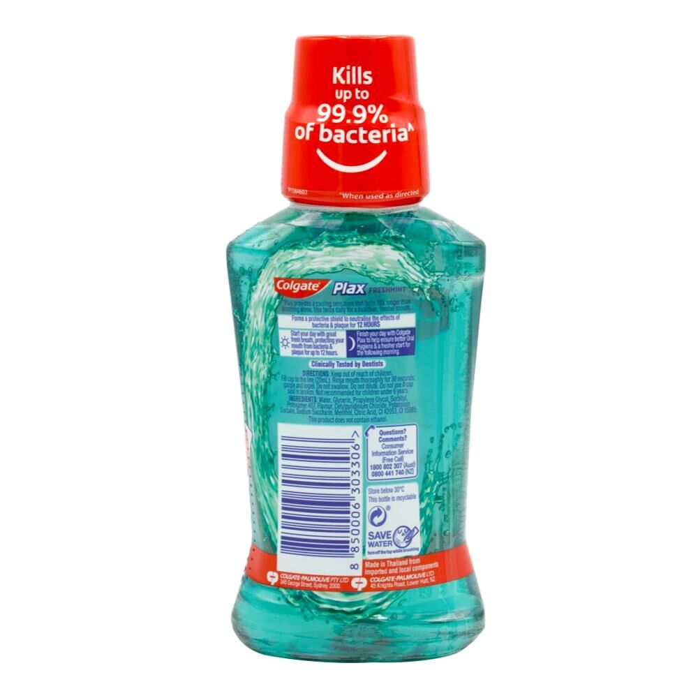 Colgate Plax Antibacterial Alcohol Free Mouthwash kills 99.9% of germs and provides 24/7 bad breath control when used twice daily. Colgate Plax provides a cooling sensation that lasts 10x longer than brushing alone. Use twice daily for a healthier, fresher mouth.