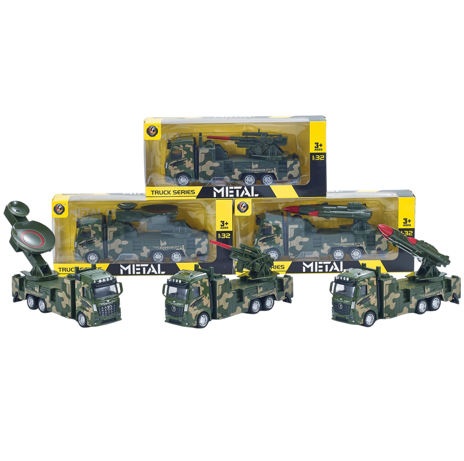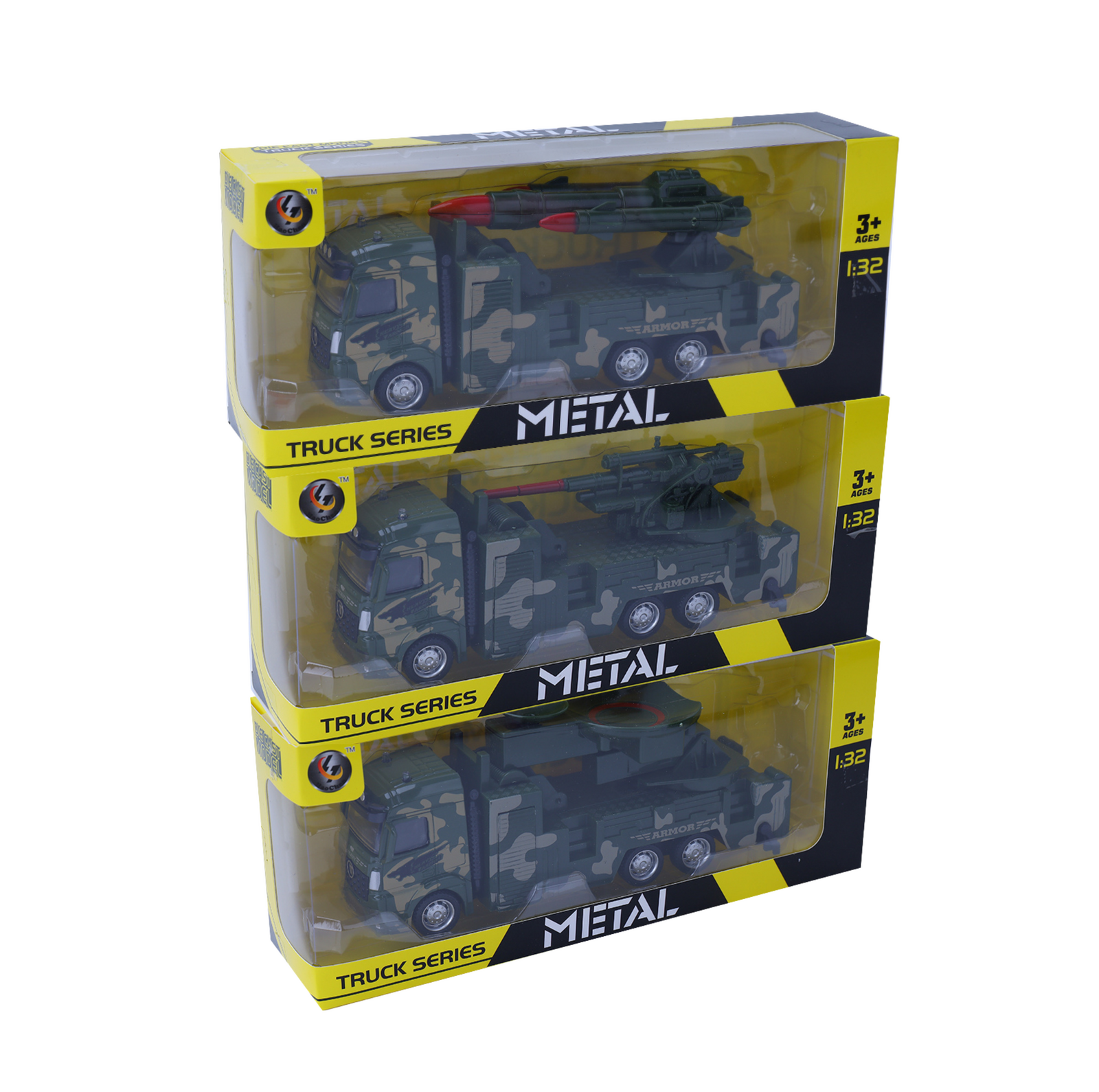 Get ready for action-packed missions with the Combat Strike Missile Carrier – a detailed 1:32 scale military vehicle built for imaginative battlefield adventures. Featuring powerful missile launch designs and a rugged camo finish, this metal toy truck brings high-impact play to every mission.