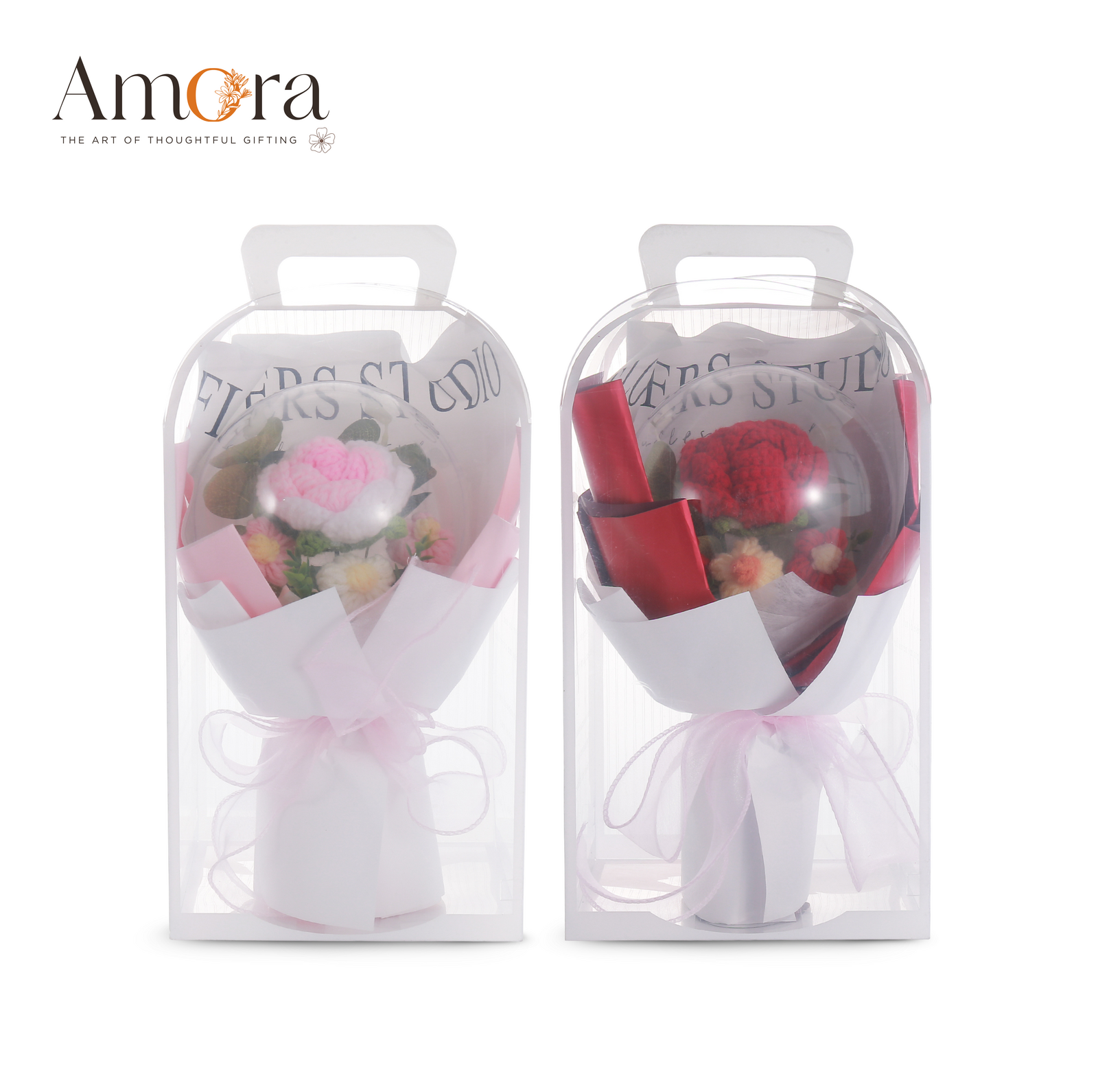 • Acrylic Dome Bouquet – A crystal-clear dome encases the crochet charm, protecting its beauty while adding a premium display look.