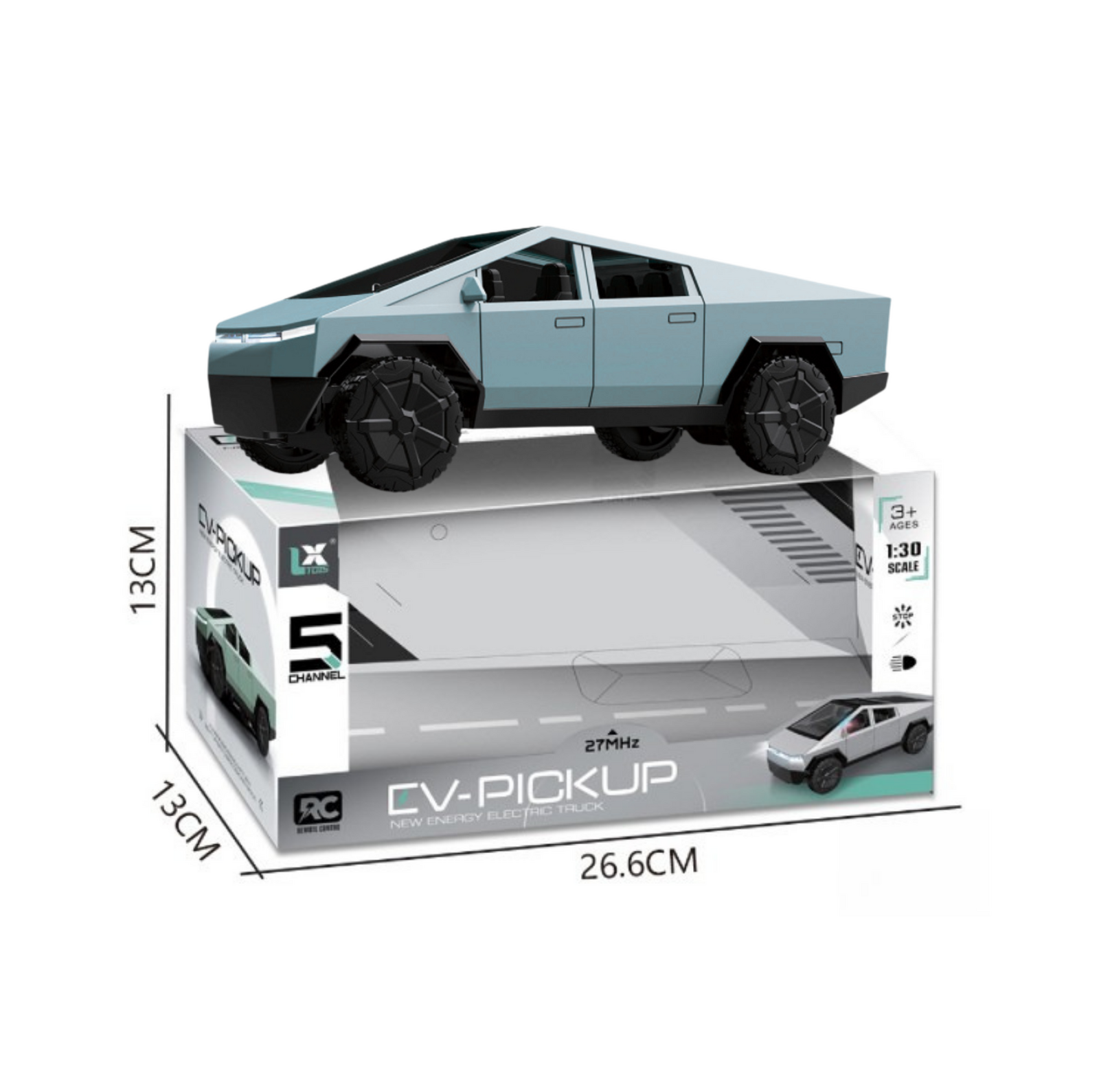 Bring futuristic power to playtime with the CyberPulse Remote Pickup! Designed with sleek, angular styling inspired by cutting-edge EV vehicles, this 1:30 scale remote-control pickup delivers high-tech excitement and smooth handling for young drivers.