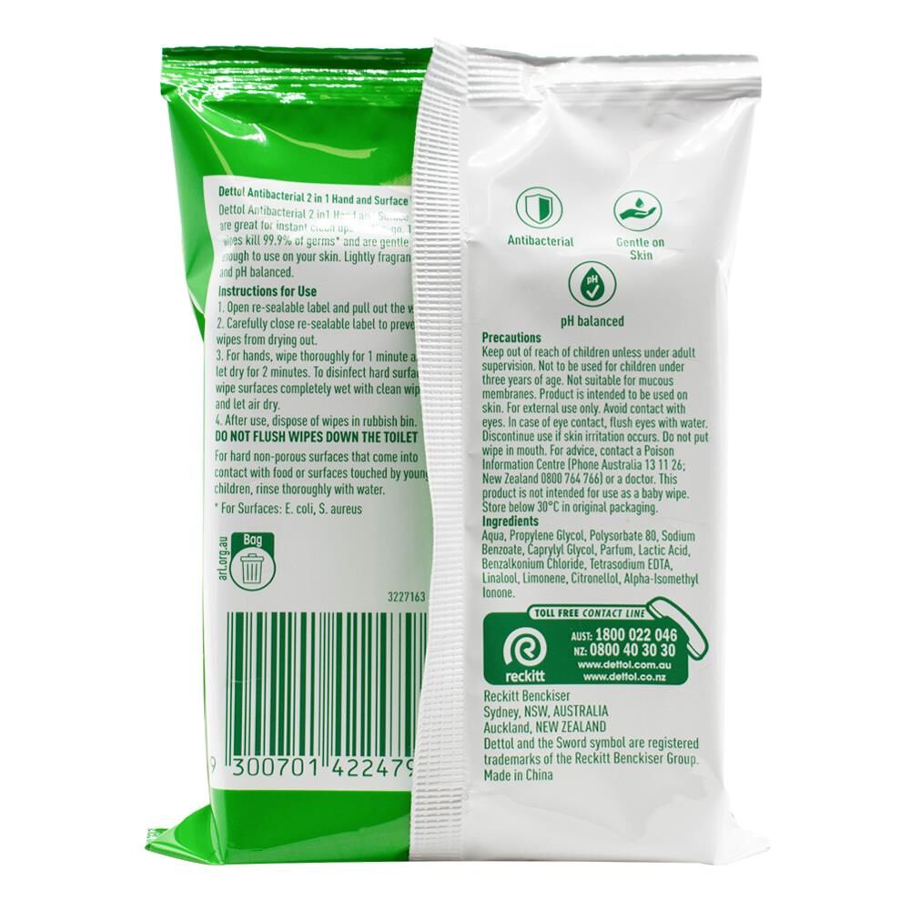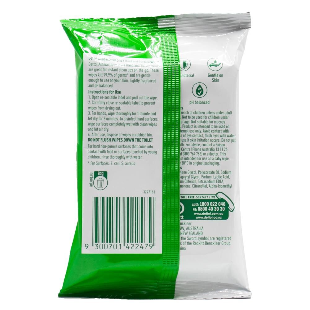 Dettol 2 in1 Anti-bacterial hand and surface wipes are great for instant clean ups on-the-go. With a mild fresh fragrance, these wipes kill 99.9% of germs (for surfaces: E. coli, Staphylococcus) and are gentle enough to use on your skin.
