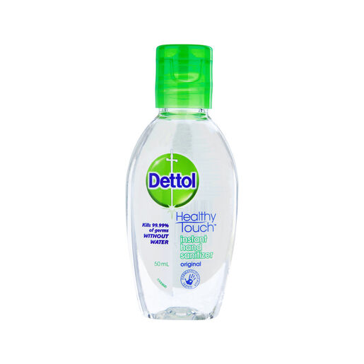 Dettol Healthy Touch Instant Hand Sanitizer liquid kills 99.99% of germs without water.
