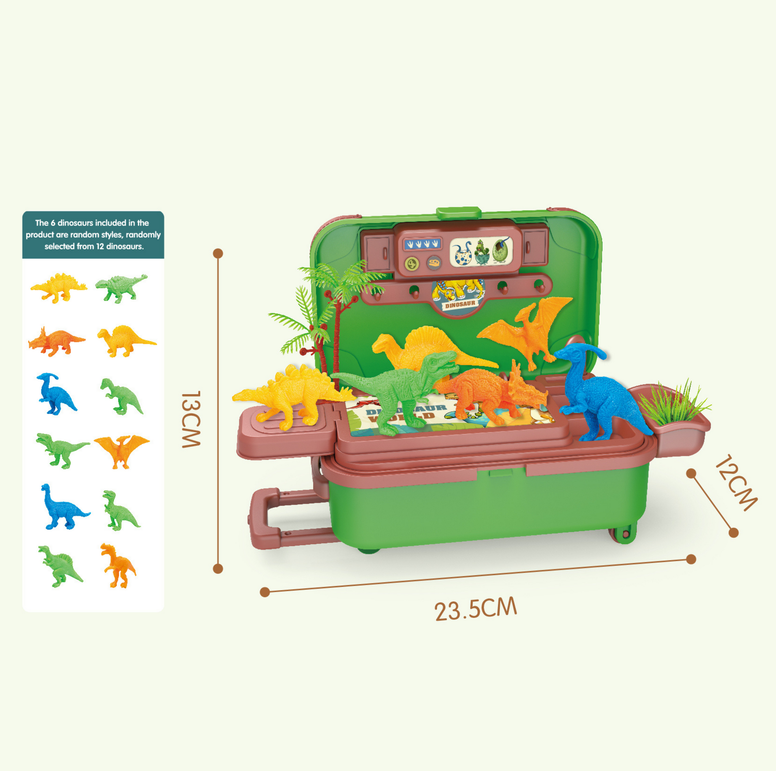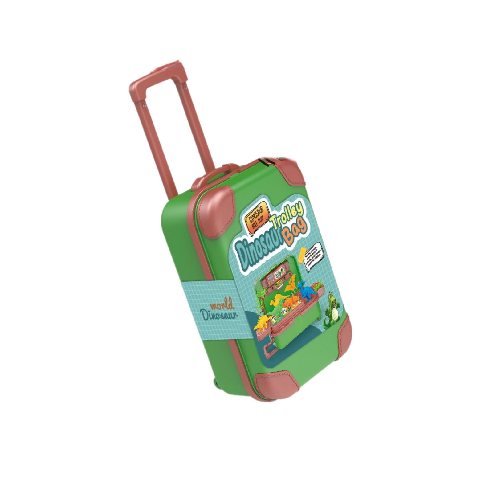 • 2-in-1 Trolley & Playset – Functions as a rolling trolley bag and unfolds into an exciting dinosaur play world.