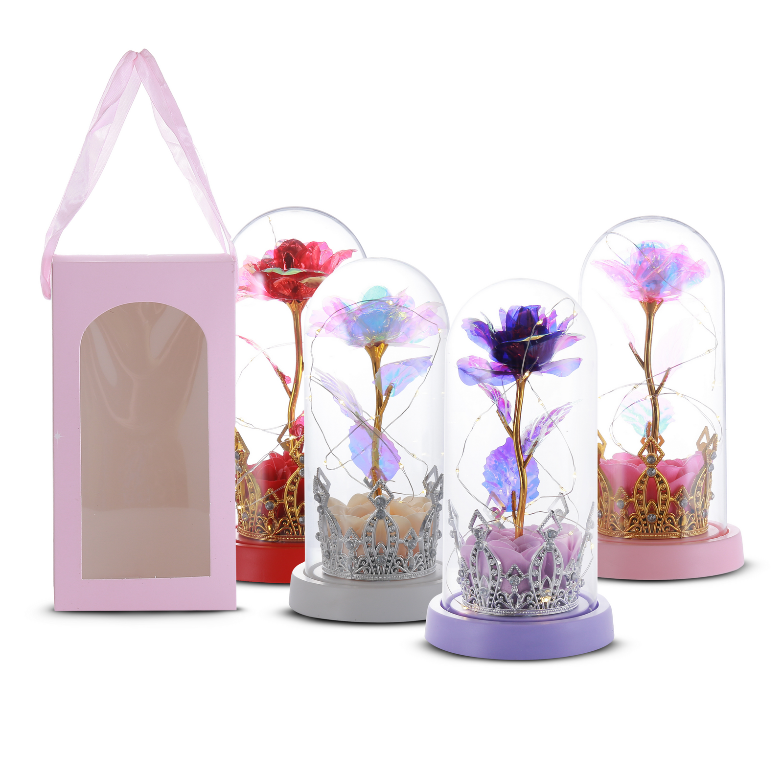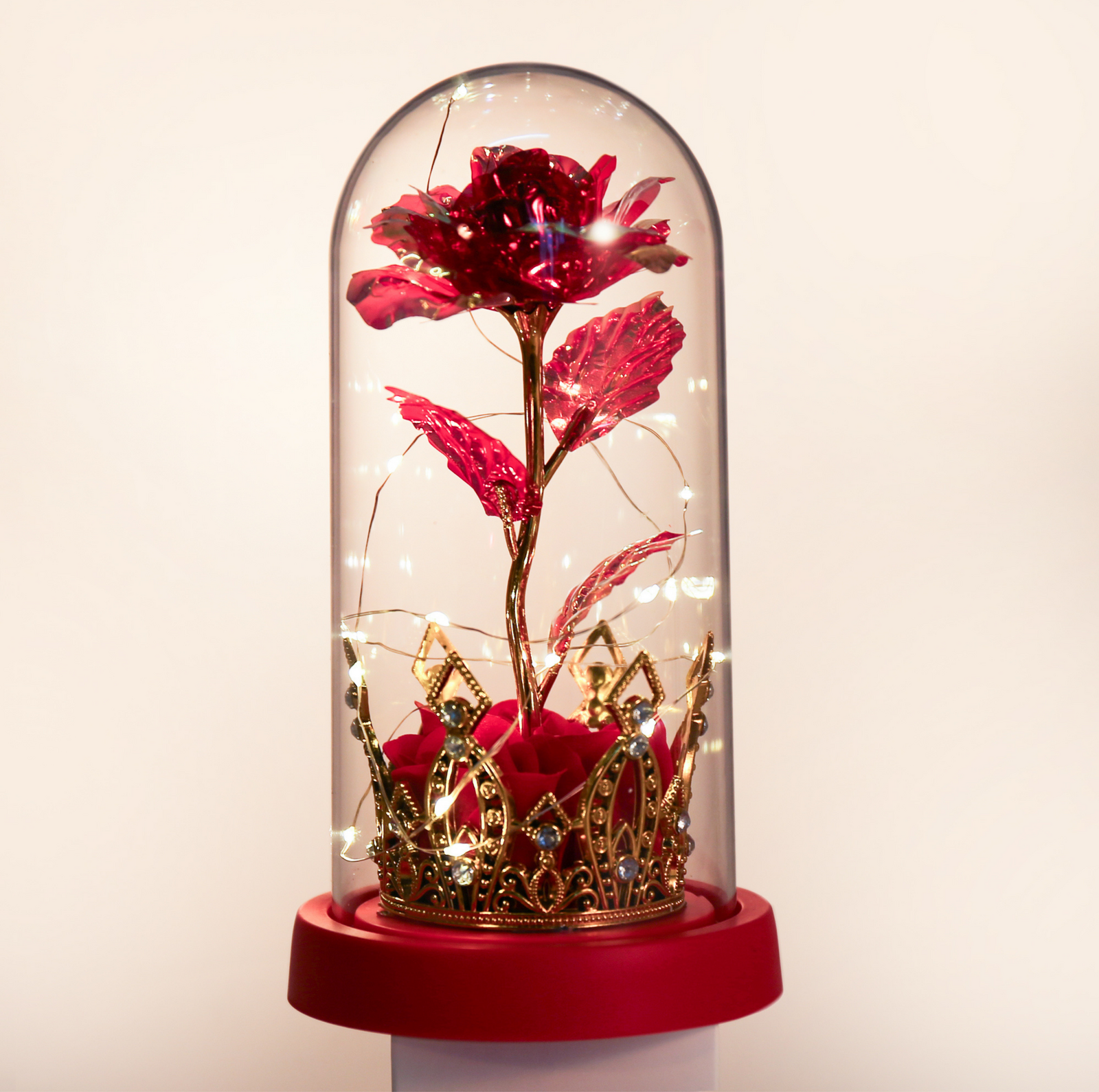 • Premium Acrylic Dome: Durable and crystal-clear acrylic dome that protects and enhances the rose inside.