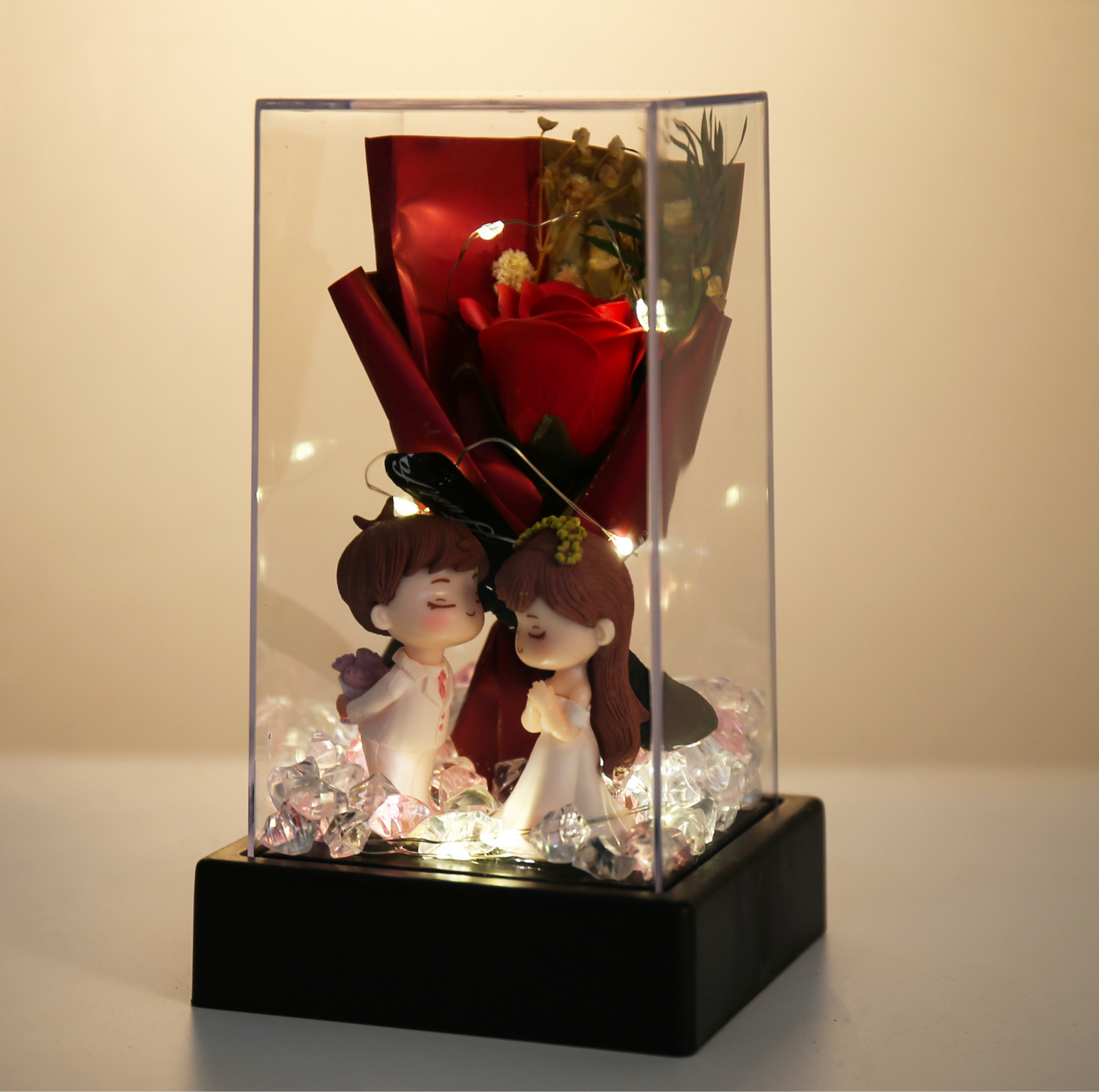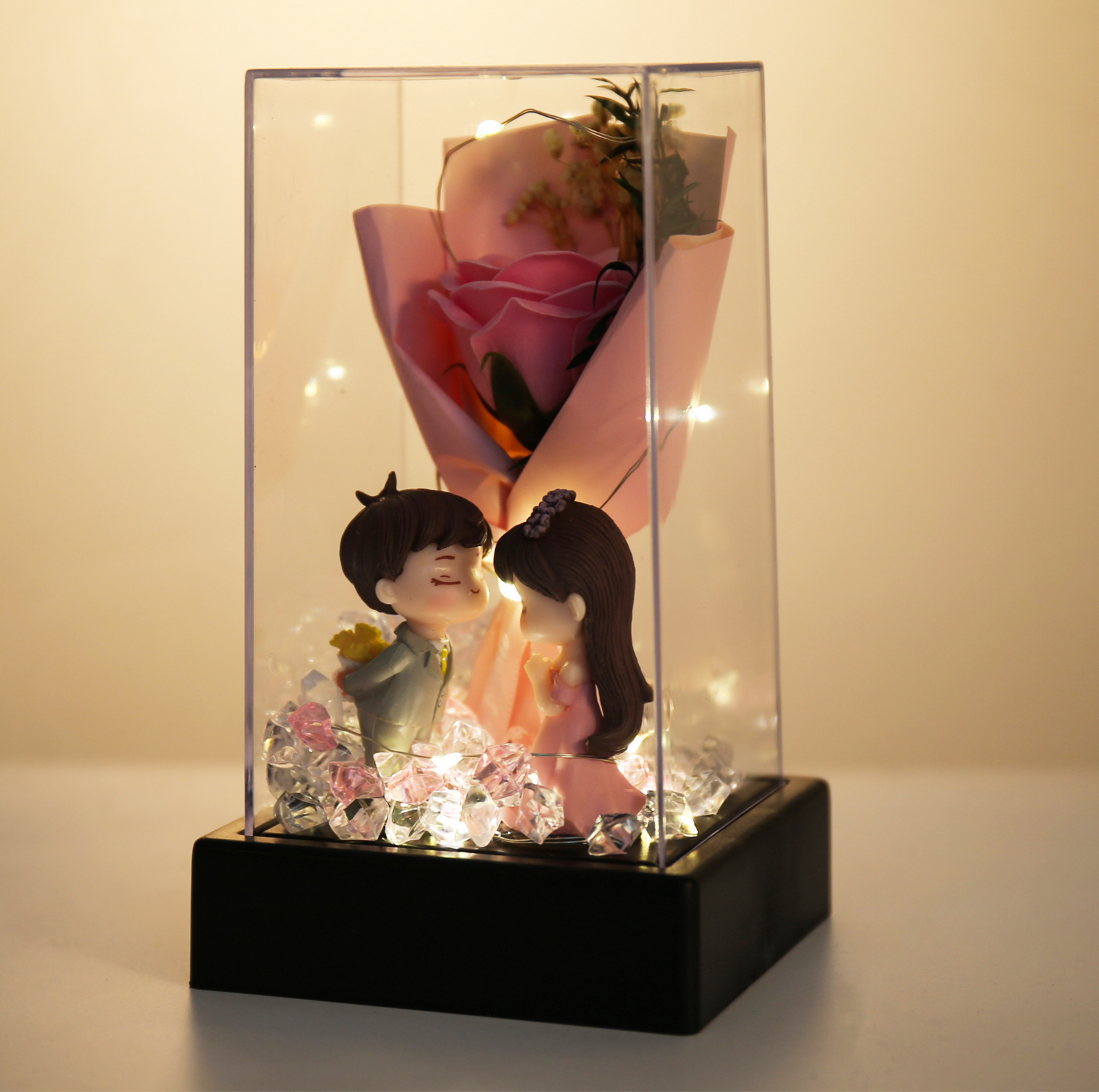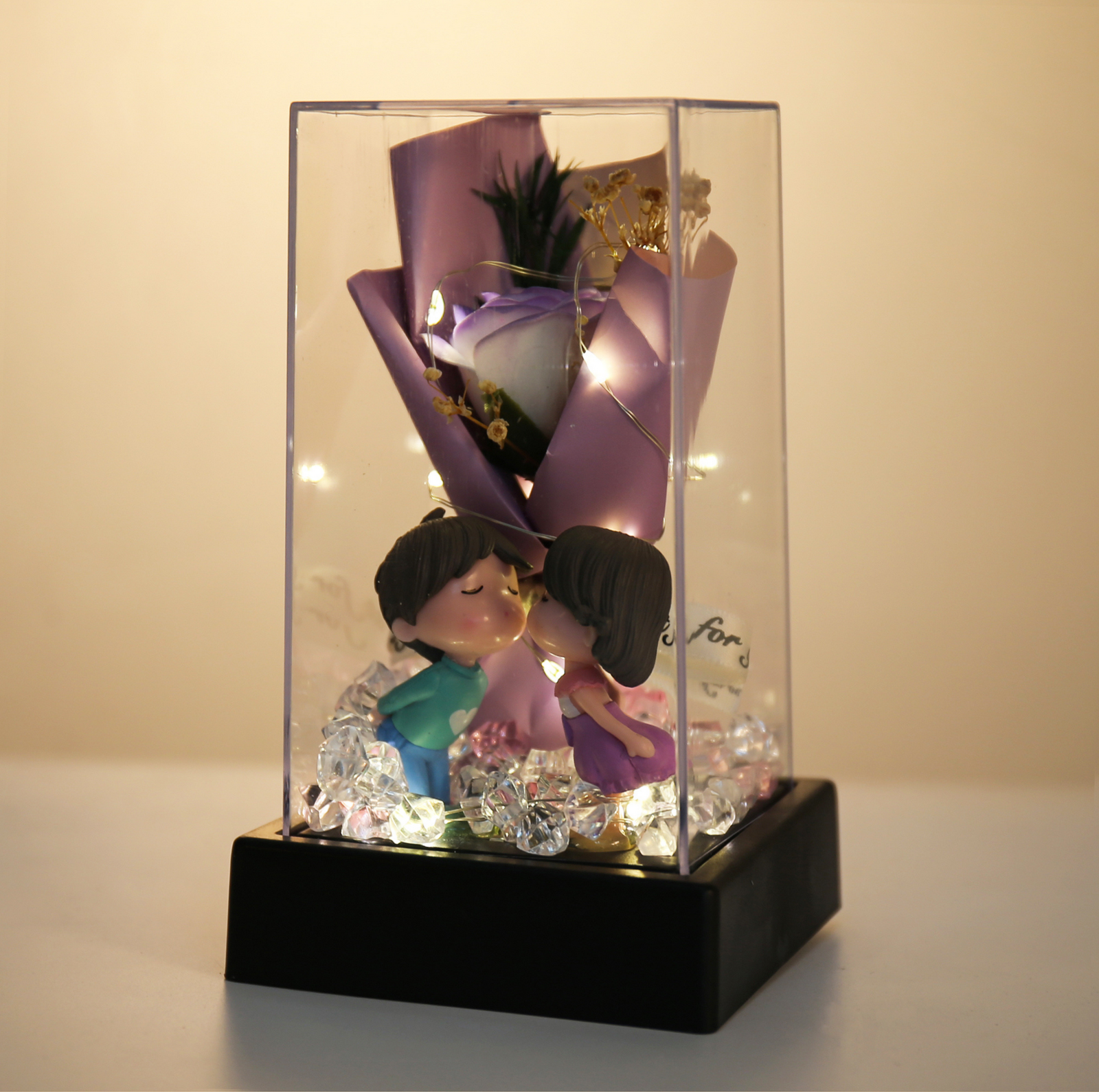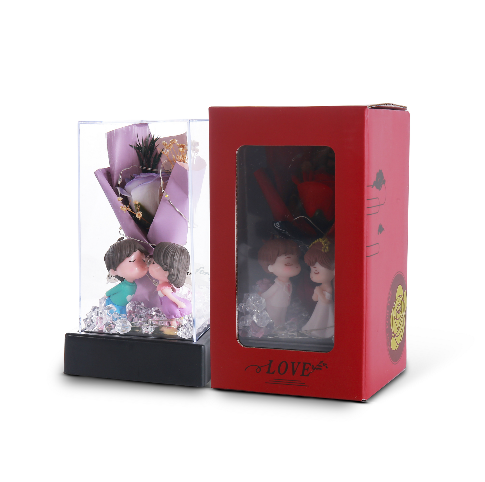 Celebrate love that lasts forever with the Forever Love Acrylic Box, a romantic keepsake designed to charm and delight. Featuring a single rose bouquet, glowing LED lights, and a sweet couple figurine, it’s the perfect gift to capture heartfelt moments.