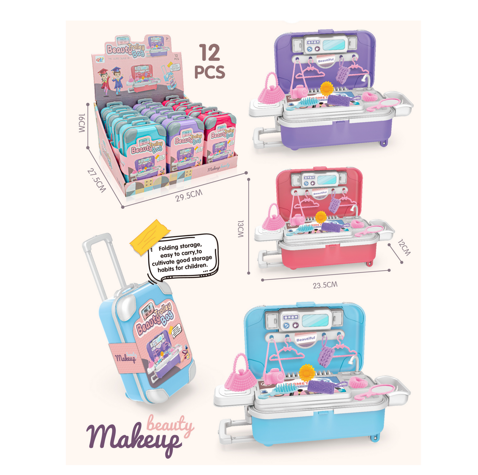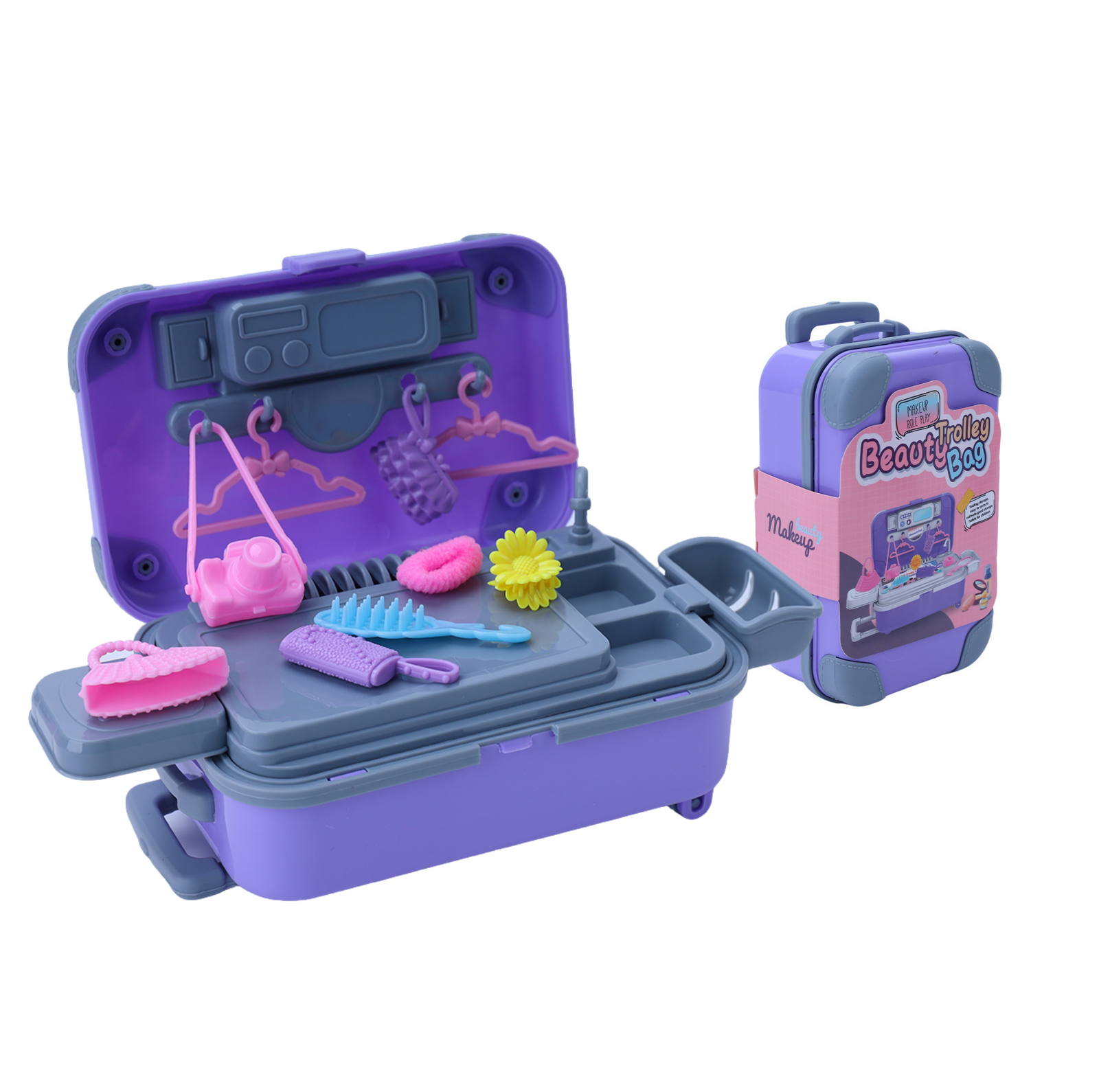 • 2-in-1 Trolley & Beauty Station – Functions as a rolling suitcase and unfolds into a complete makeup-themed playset.