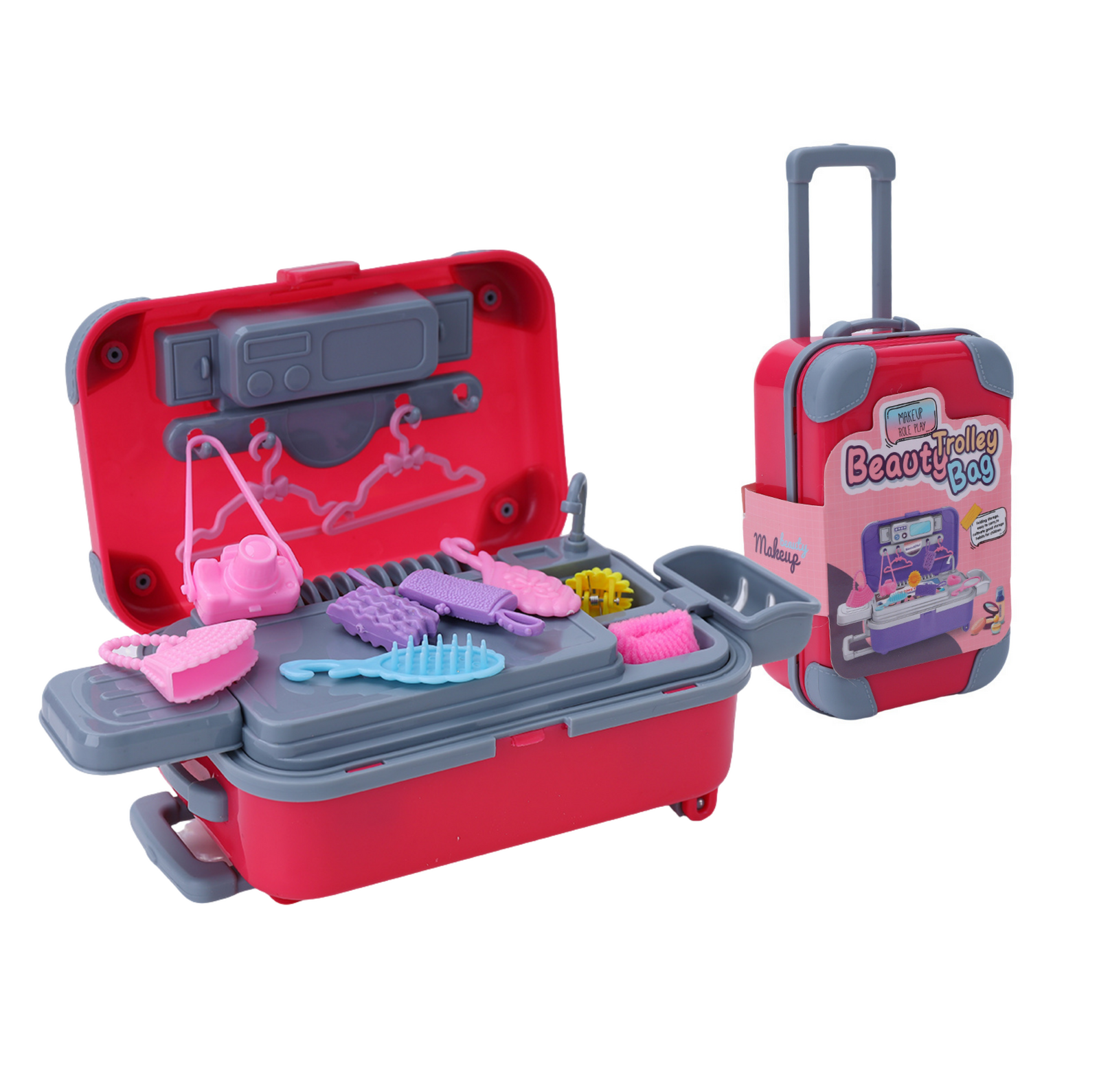 • 2-in-1 Trolley & Beauty Station – Functions as a rolling suitcase and unfolds into a complete makeup-themed playset.