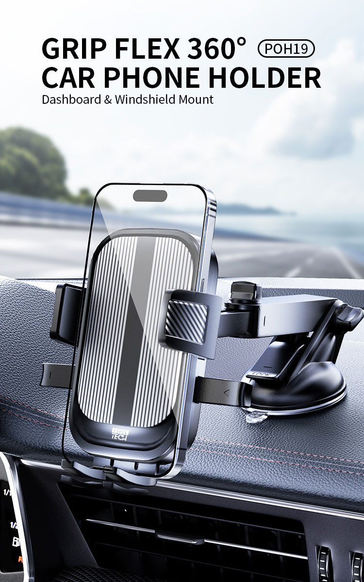Model:POH19 "Experience unparalleled convenience and security with the IPL TECH POH19 Grip Flex 360° Car Phone Holder. Designed for flexible mounting and easy operation, it ensures your smartphone is always within reach and perfectly positioned."