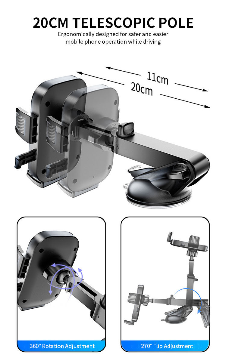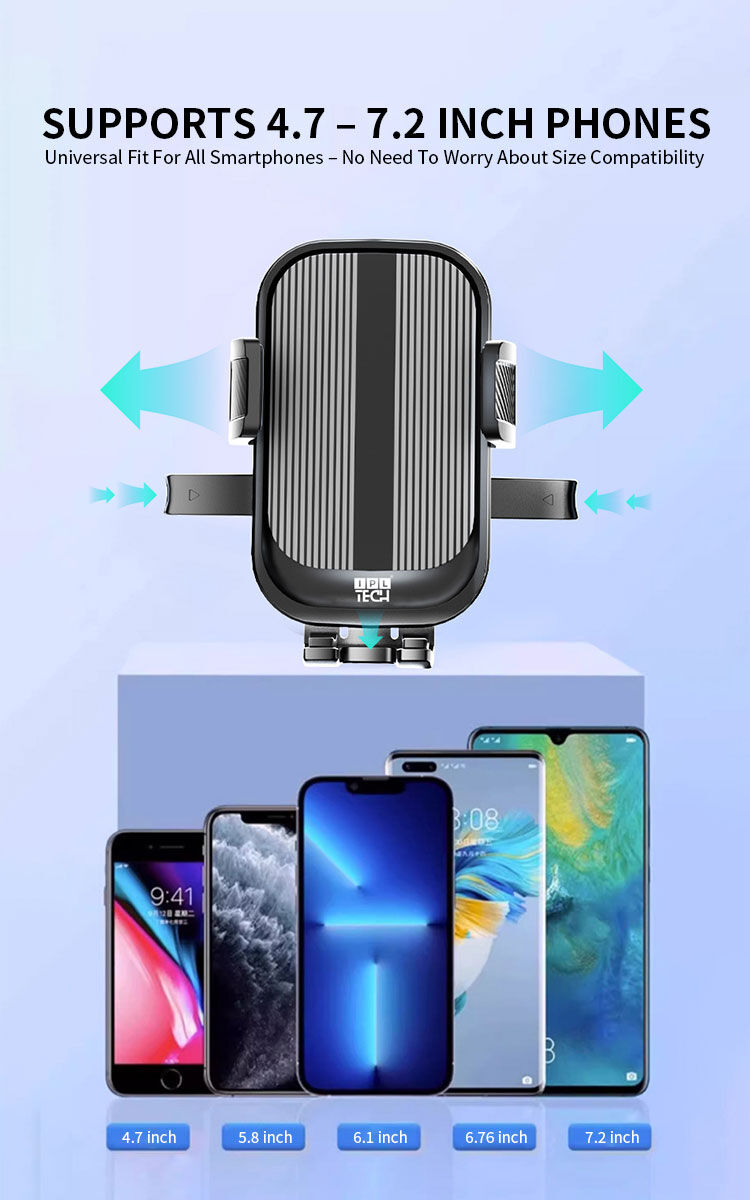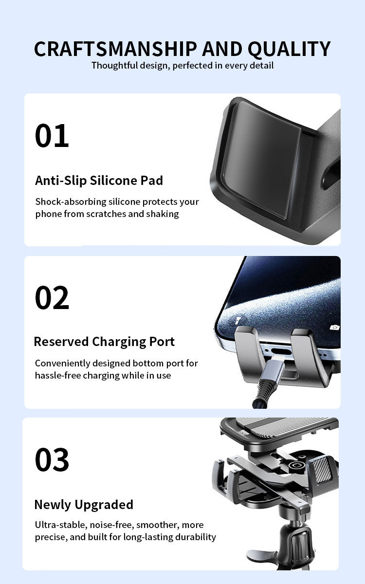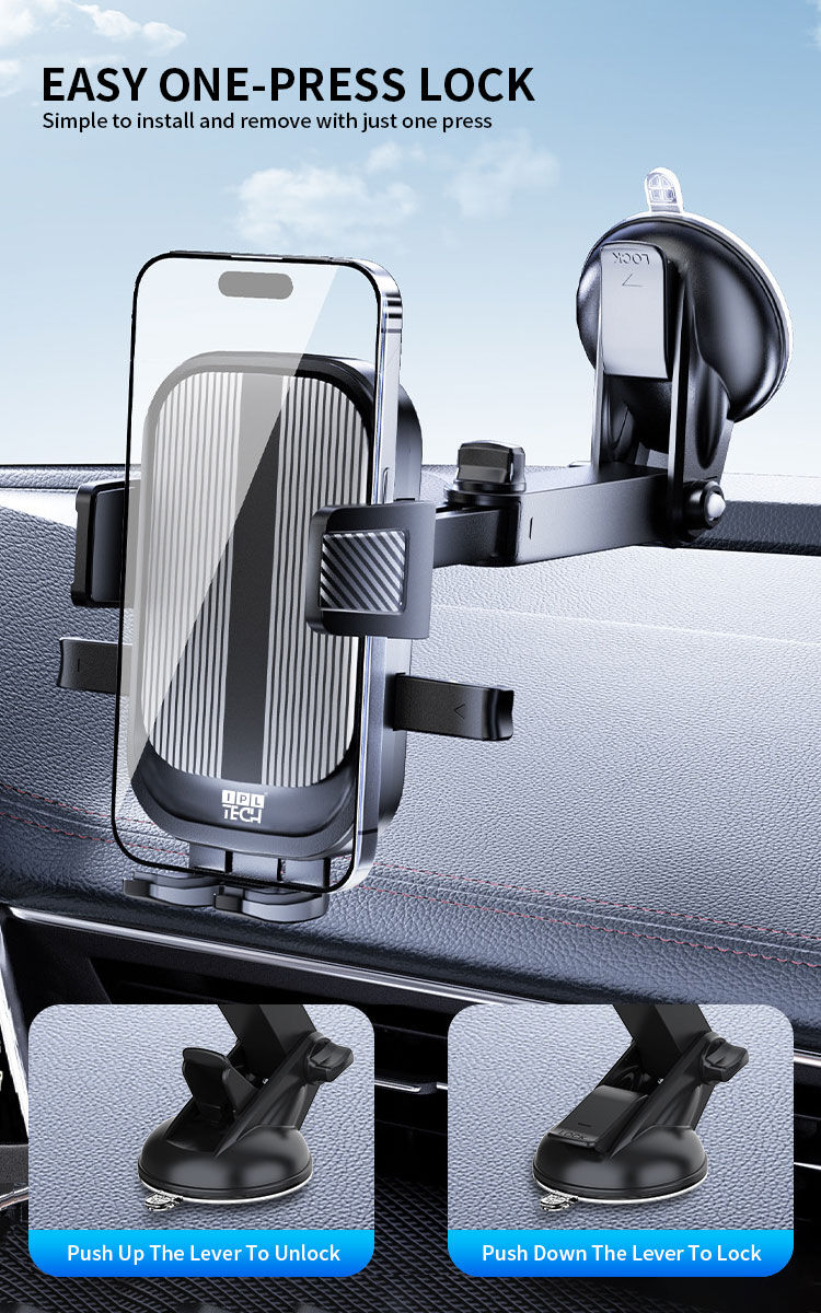 • Automatic Locking: Ensures your phone is securely held with an intuitive auto lock and release mechanism.
