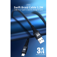 HyperSync Quick Charge & Sync Cable -1.2m USB-A to Type-C 3A