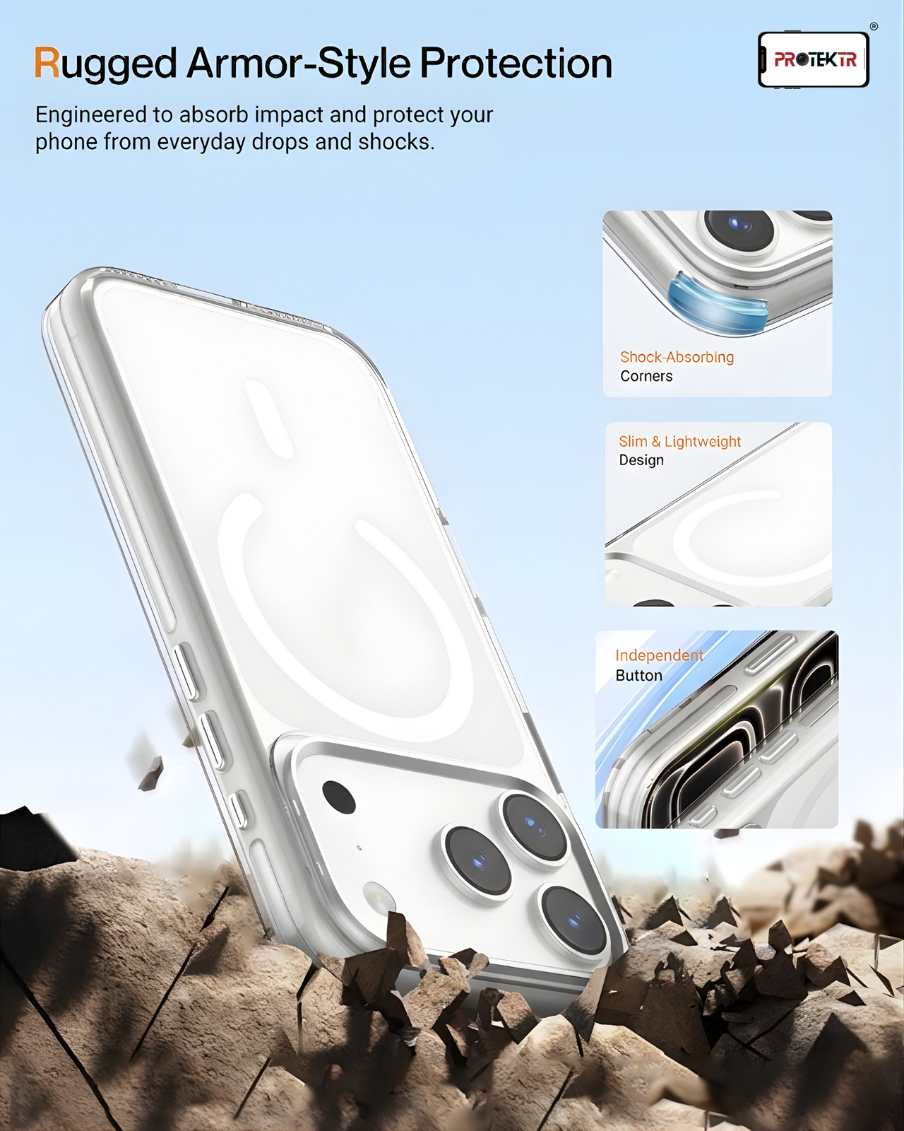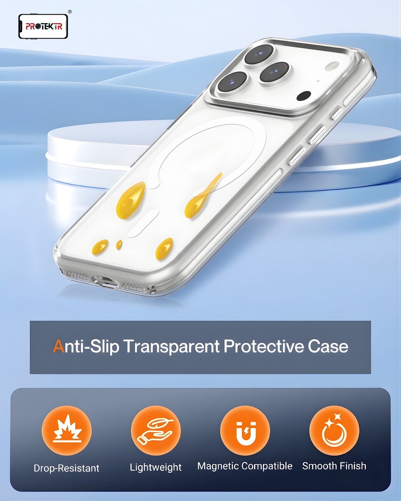 Give your iPhone a clean and modern look with the PROTEKTR Ivory Mist MagCase. Designed with a soft clear-white finish and integrated MagSafe alignment, this case offers reliable protection while maintaining a slim and elegant profile. Perfect for users who want everyday durability without hiding their device’s design.