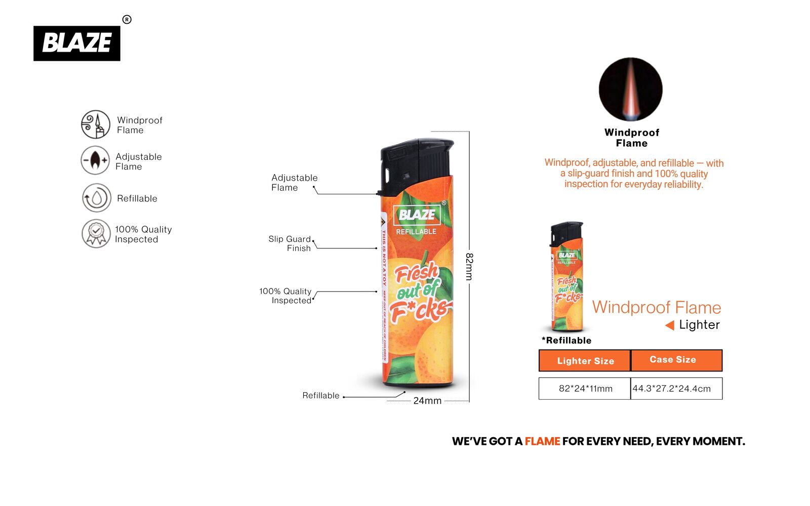 • Windproof Flame – Delivers a strong, consistent flame that withstands wind and outdoor conditions.