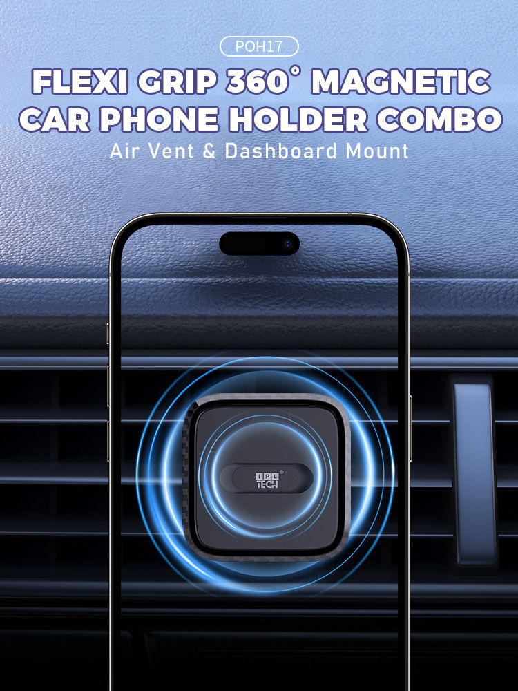 Model:POH17 "Experience the perfect blend of flexibility and security with the IPL TECH POH17. Our Flexi Grip 360° Magnetic Car Phone Holder Combo ensures your smartphone is always within reach, providing a safe and convenient driving experience."
