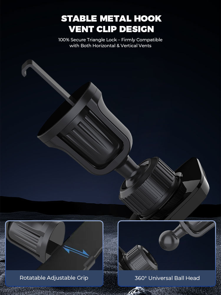 • Safe Driving: Keep your hands on the wheel and eyes on the road with this reliable phone holder.