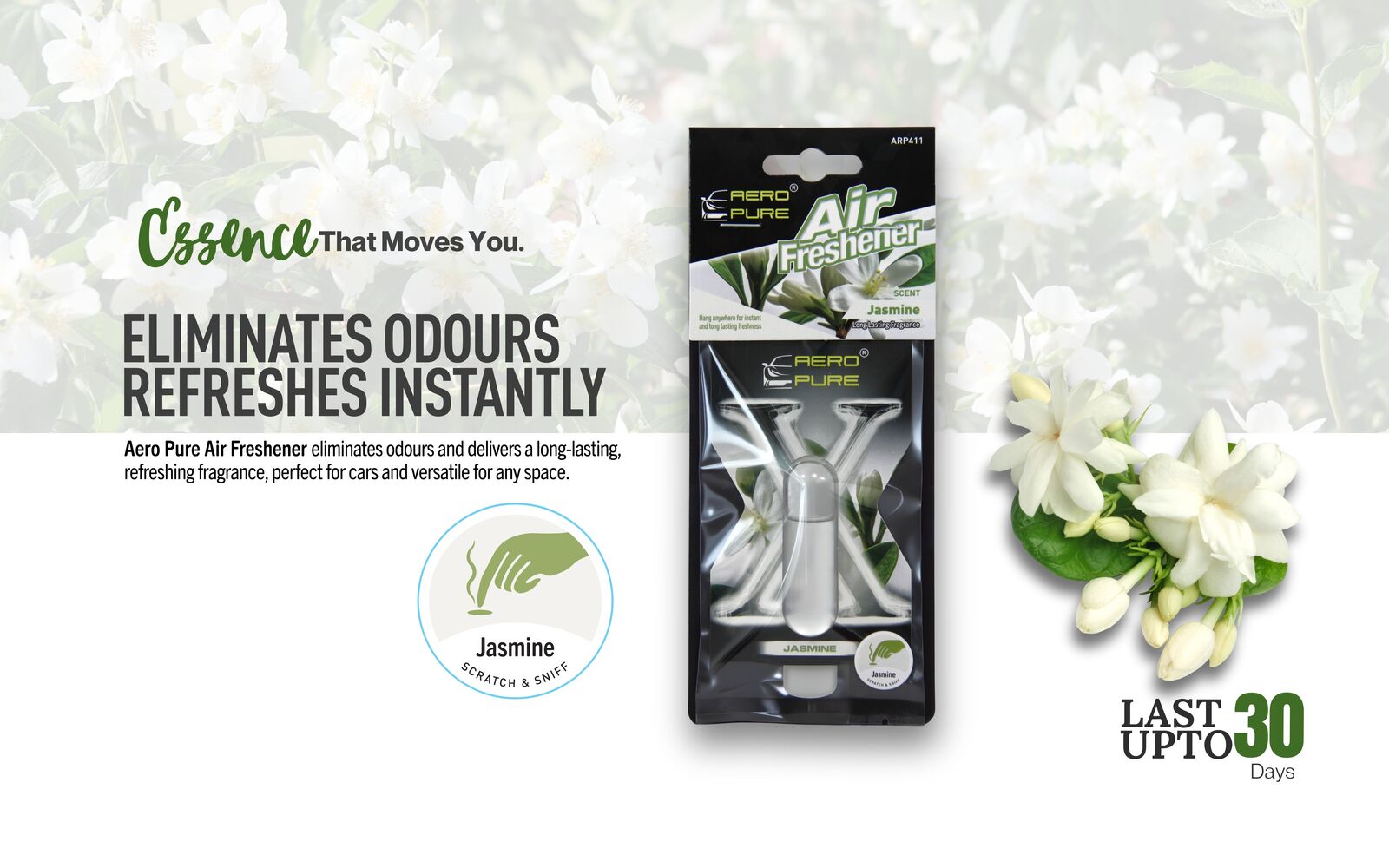 Experience the timeless charm of jasmine with Aero Pure Membrane Card Freshener – where elegance meets freshness, every day.