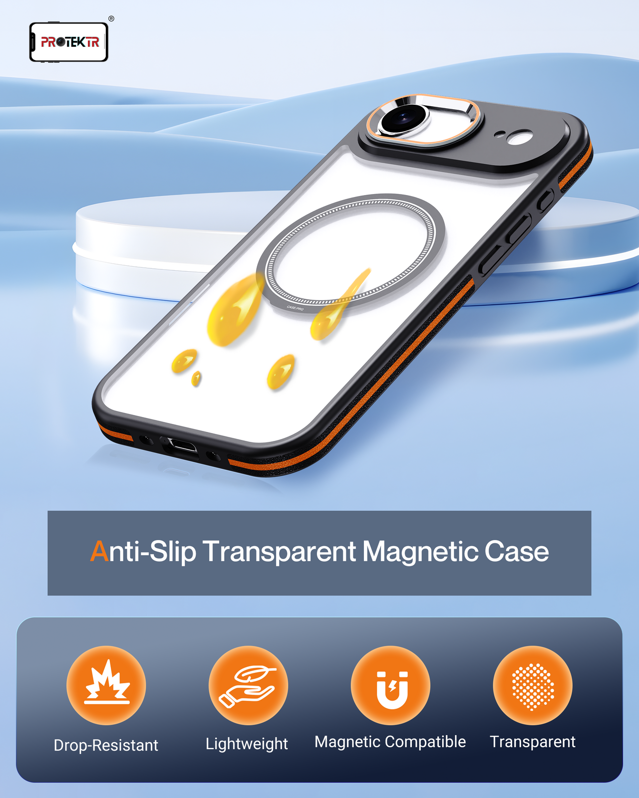 Constructed with a durable dual-material design combining a transparent back panel with a protective frame. The integrated magnetic ring ensures reliable MagSafe connectivity while maintaining a slim and comfortable profile.
