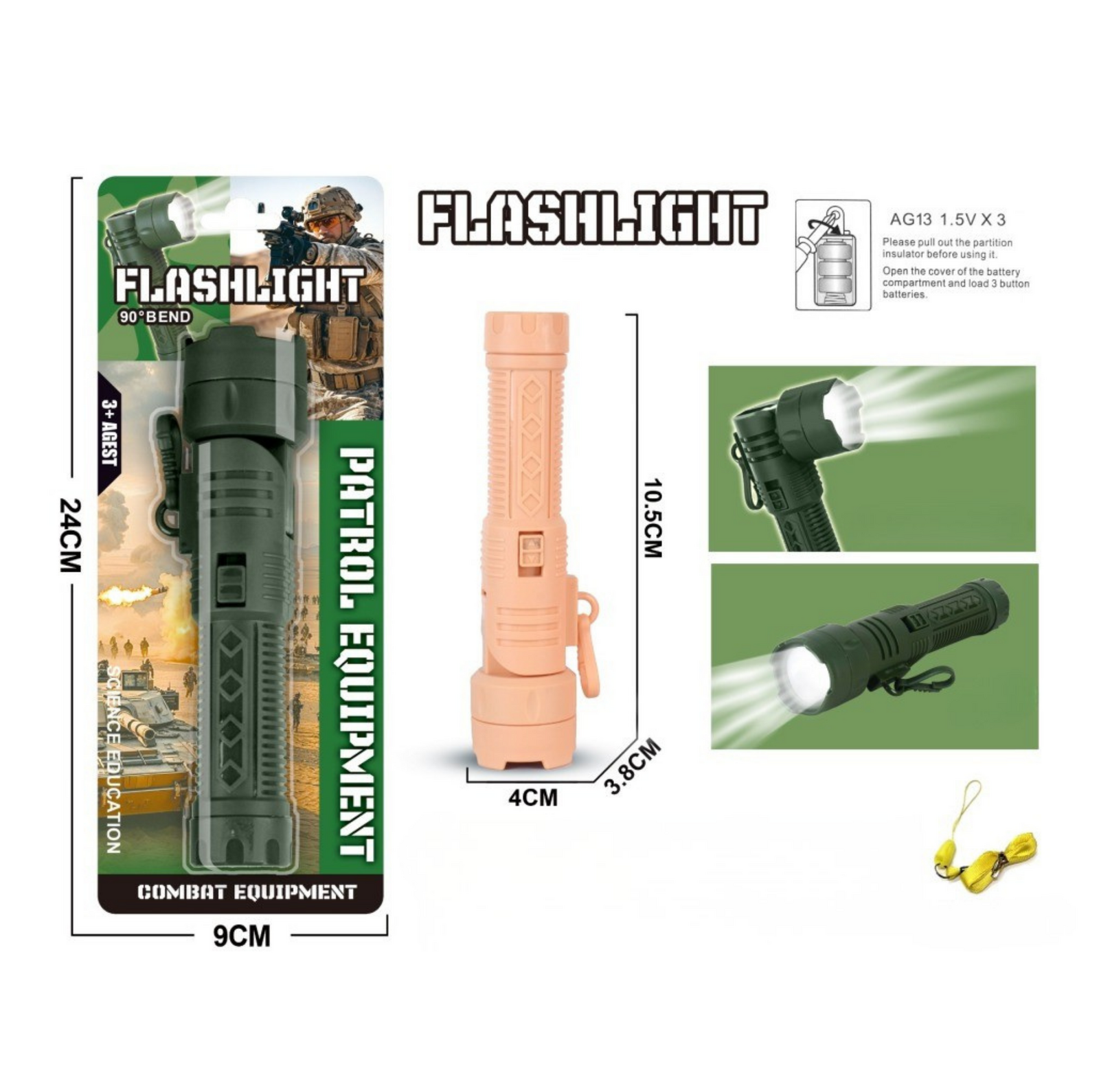 Gear up for adventure with the Military Patrol Flashlight! Designed with a rugged, tactical look, this toy flashlight brings realistic play to young explorers and future heroes.