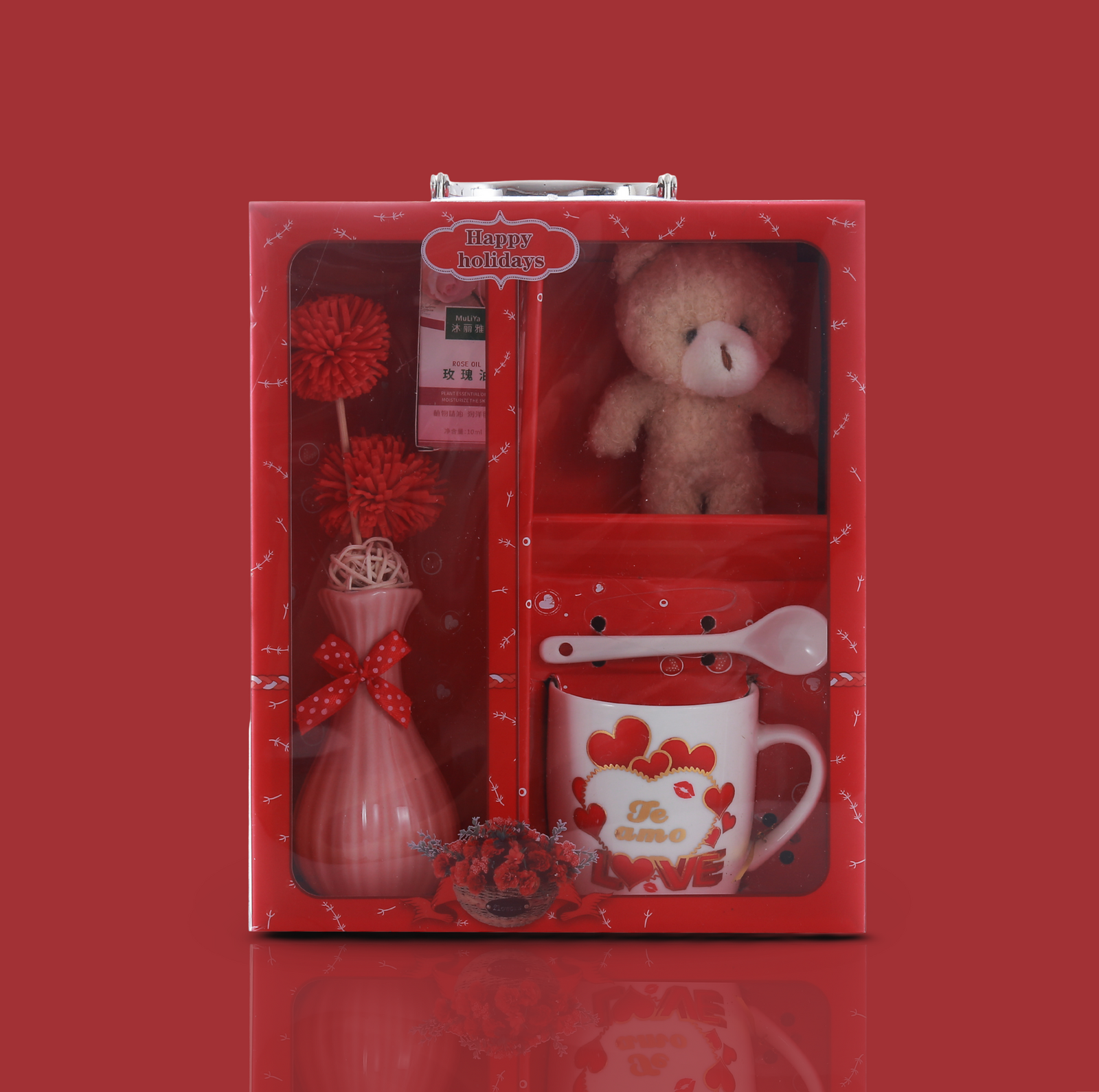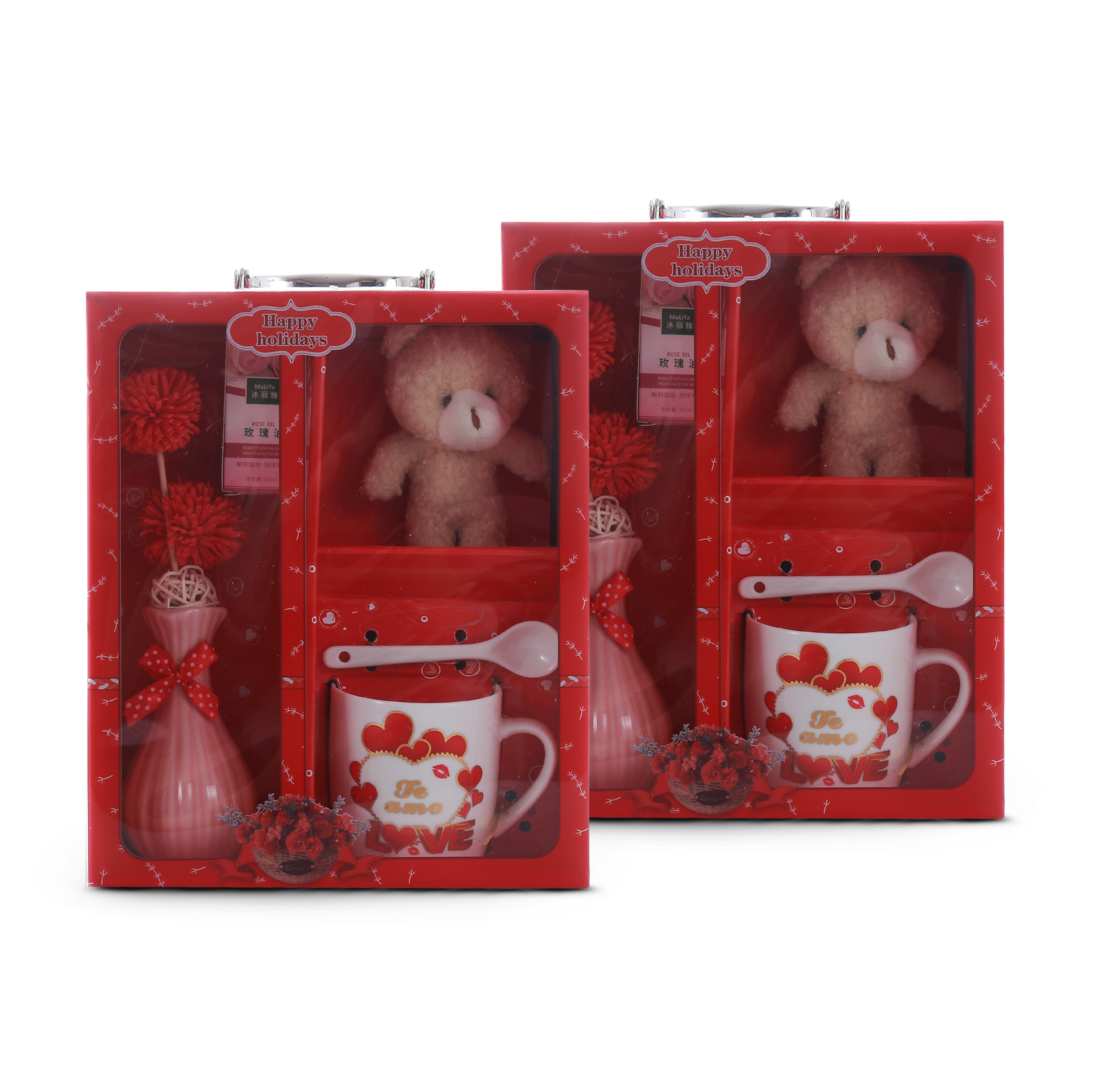 • Complete Gift Set – Includes a teddy bear, ceramic mug, and elegant floral décor for a heartwarming presentation.