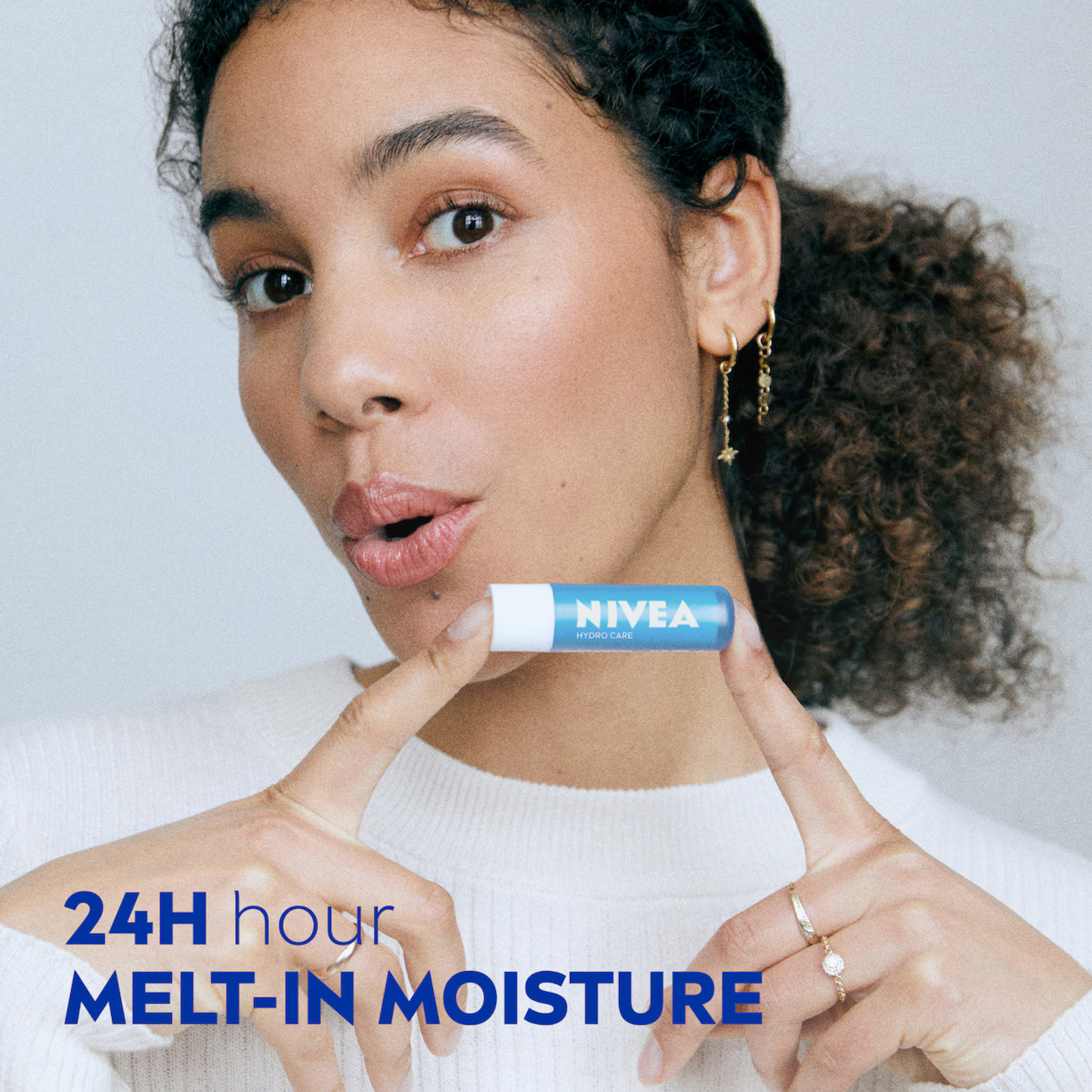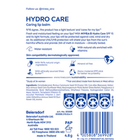 Care for your lips with NIVEA Hydro Care Lip Balm SPF15! Keep them beautifully smooth all day and protect them from drying out. The unique formula, with naturally derived oils and Shea Butter has a pleasantly smooth texture that instantly melts into your lips and keeps them moisturised for 24 hours*. Make your lips lush and healthy with its soft texture that glides on evenly, easily and tint free so that no mirror is required. With SPF 15 your lips are also protected against the harmful effects of the sun. The skin compatibility of this caring lip balm has been dermatologically approved. *clinically tested.