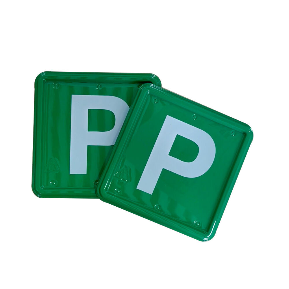 • High Visibility: White “P” on vibrant green background for clear recognition