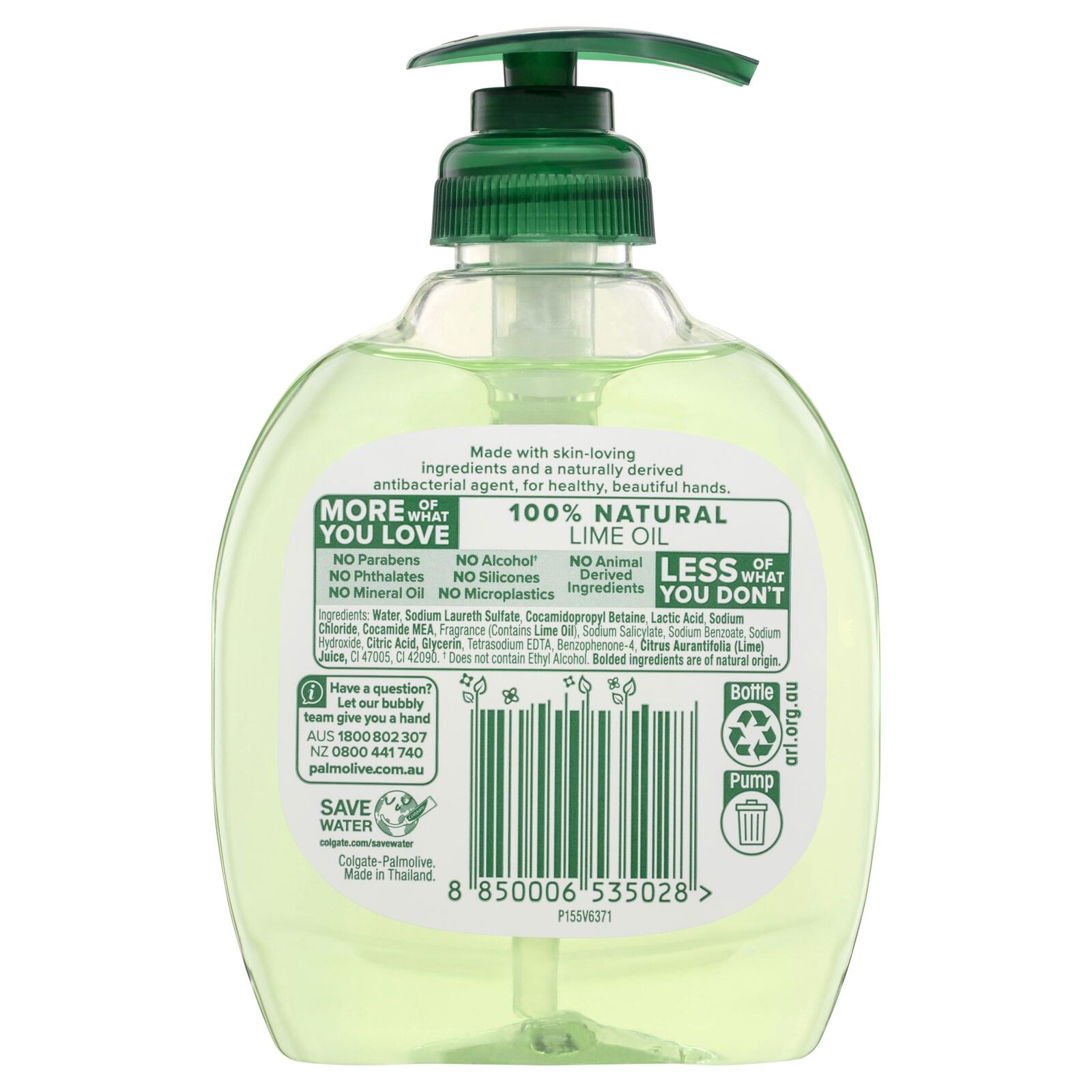 This product is made with 100% natural lime oil and a naturally derived antibacterial agent, clinically proven to provide long lasting antibacterial protection.