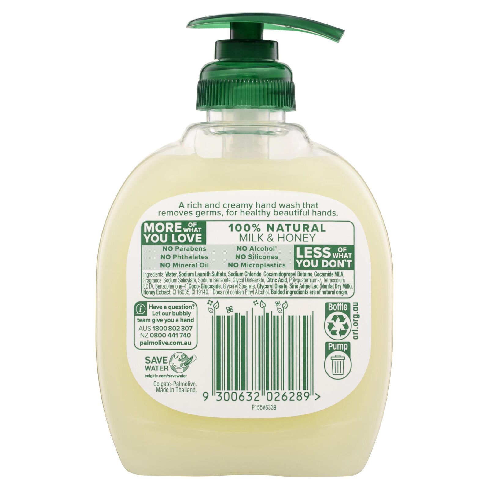 Palmolive Naturals Milk & Honey Hand Wash is made with skin-loving ingredients and contains a 95% natural origin formula for healthy, beautiful hands.