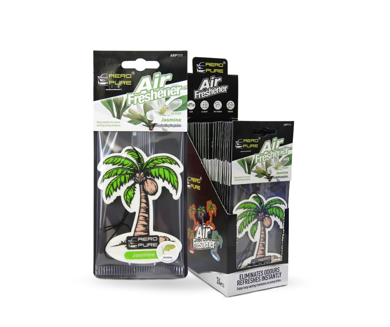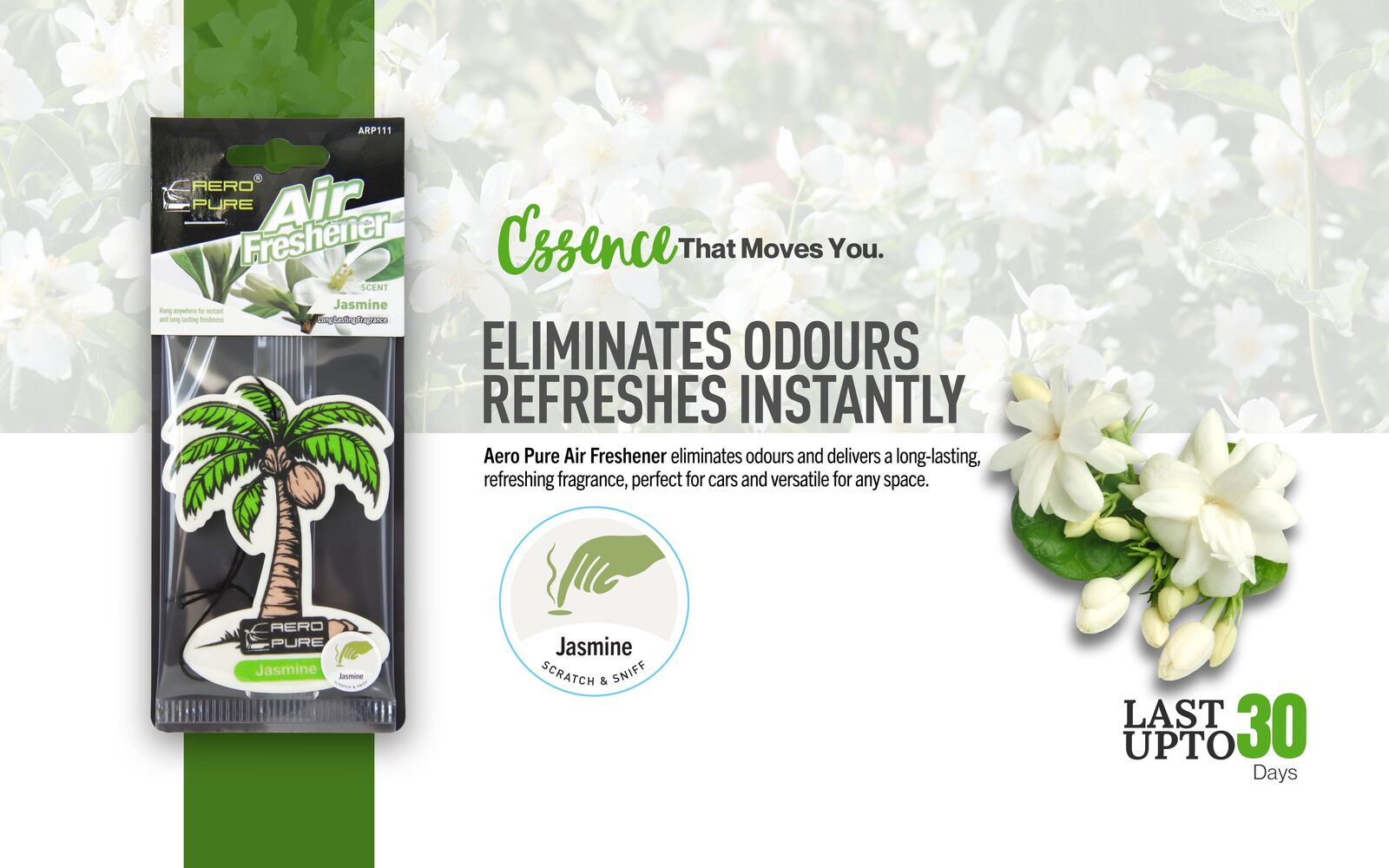 Bring the soothing essence of Jasmine into your space with the Aero Pure Paper Air Freshener. Crafted for a refreshing and long-lasting aroma, this hanging freshener is perfect for cars, closets, pet rooms, and homes.