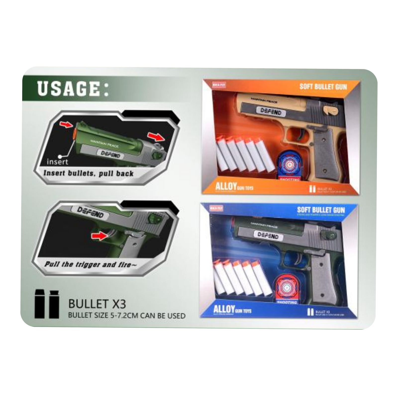 Take aim and defend your mission with the Precision Strike Soft Bullet Gun — a safe, action-packed blaster designed for thrilling play and accurate targeting. With its realistic alloy-style design and easy-to-use mechanism, it’s perfect for young adventurers who love competitive fun.