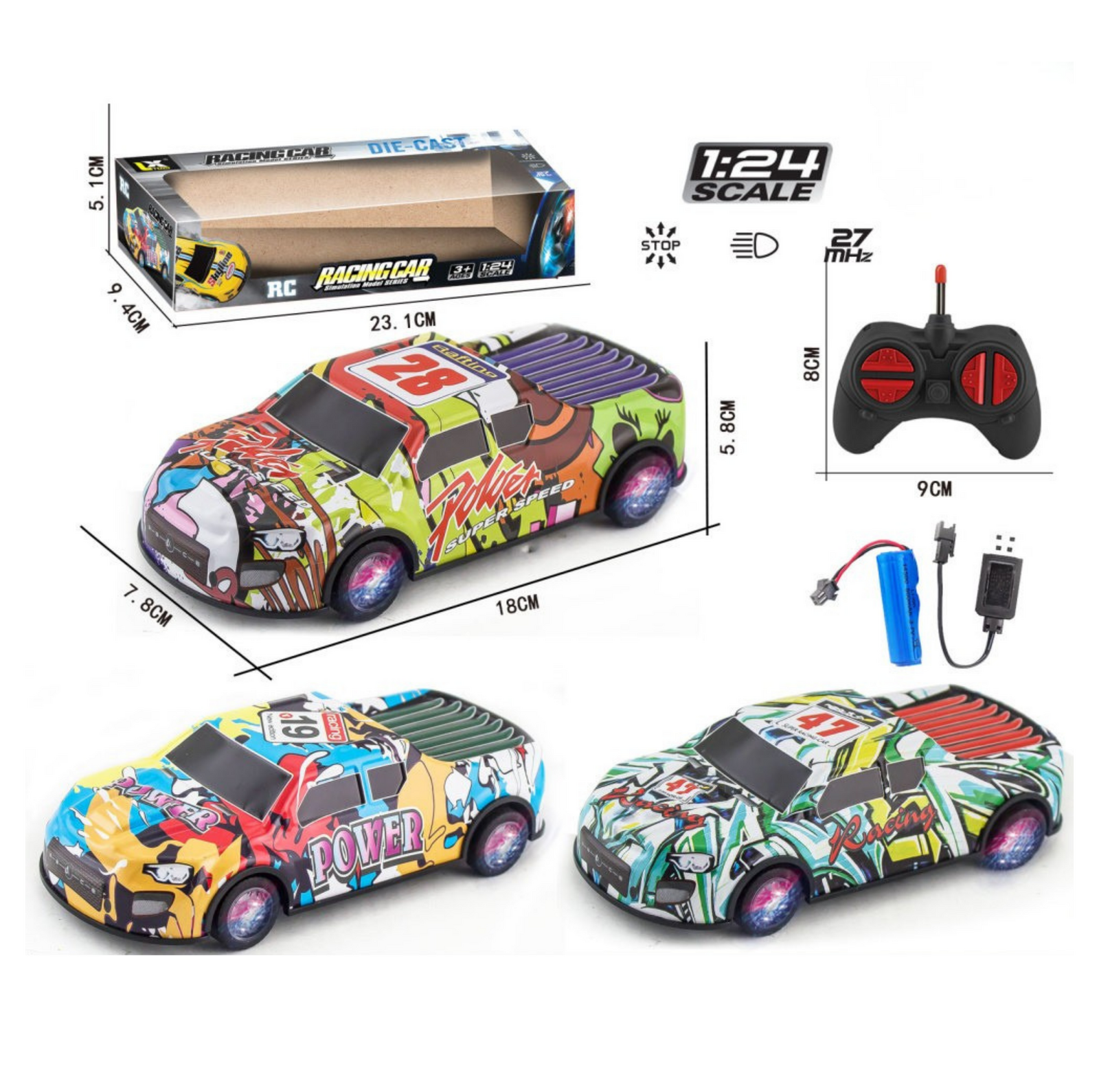 Bring the thrill of street racing into your hands with the Pro Street Racer RC Car! Featuring bold graffiti-style graphics and sleek aerodynamic design, this high-speed racer delivers action-packed fun for young motor enthusiasts.