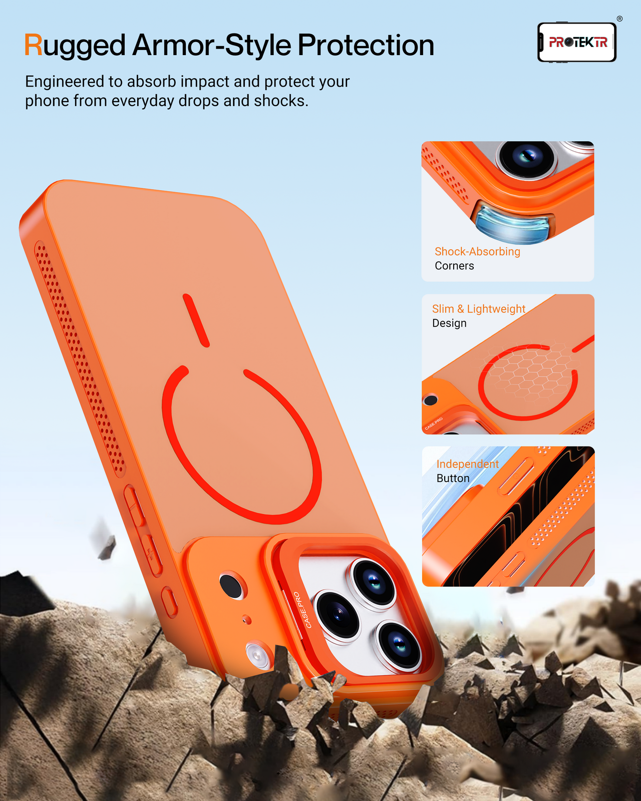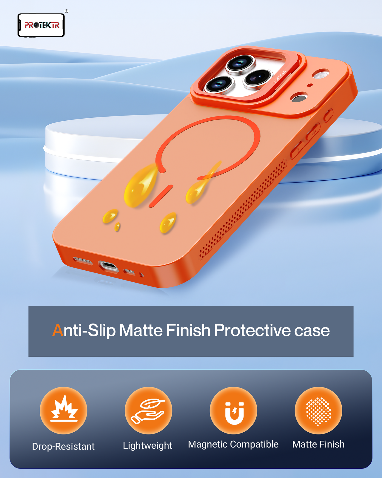Protect your device with bold colour and everyday functionality using the PROTEKTR ProMesh Orange Cover. Designed in a vibrant orange finish, this case combines dependable protection with a sleek modern design.