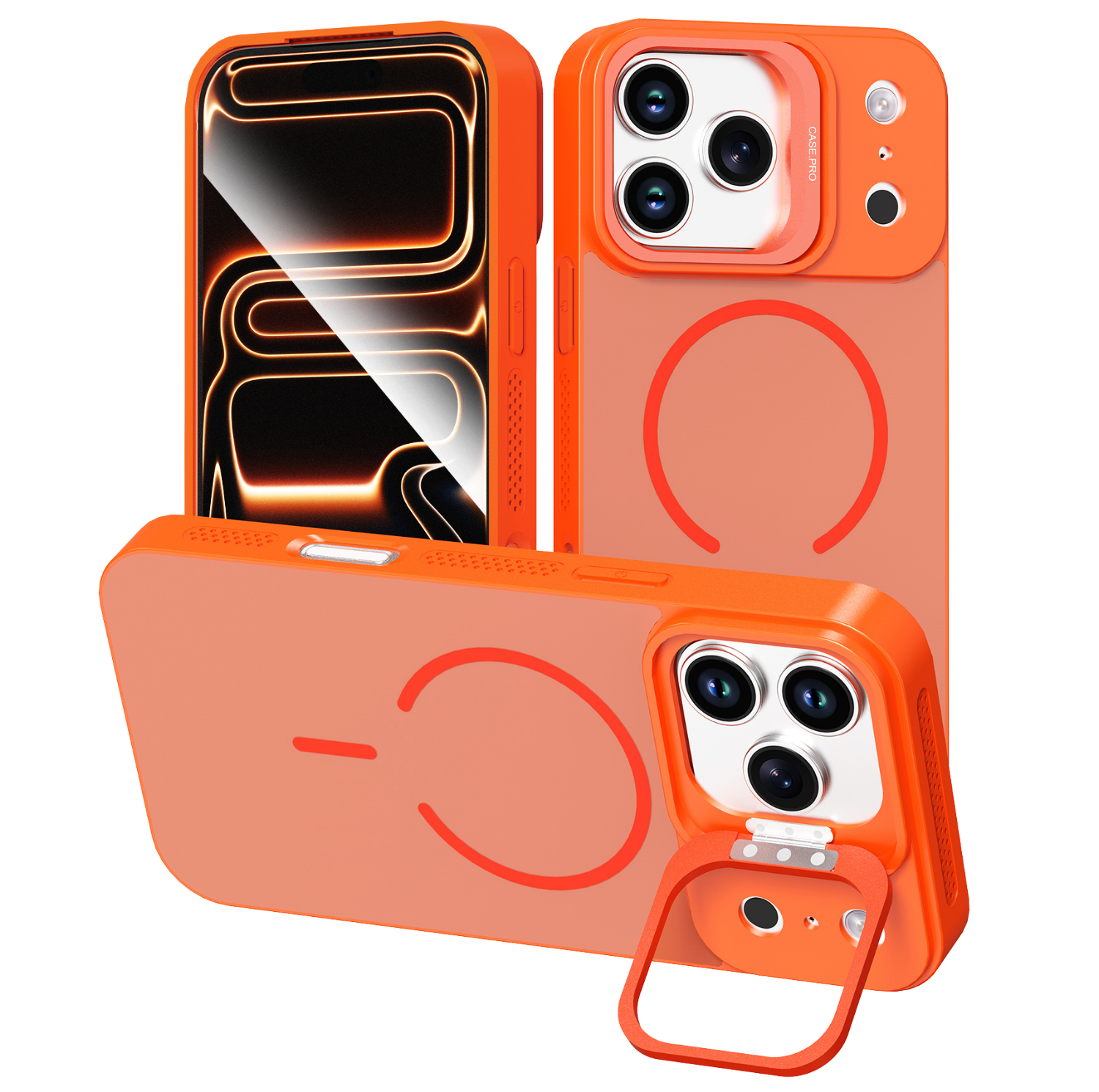 Built with strong N52 magnetic alignment, the case ensures seamless compatibility with MagSafe chargers and accessories while supporting wireless charging. The foldable metal camera bracket doubles as a stable kickstand, allowing convenient hands-free viewing for videos, video calls, or browsing.