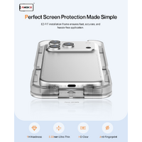 Protect your iPhone 17 Pro Max with the PROTEKTR EZ-FIT Glass Kit, featuring an auto-align installation frame for quick and bubble-free installation. Made from 0.33mm high-alumina tempered glass with 9H hardness, it delivers strong scratch protection while maintaining smooth touch sensitivity and crystal-clear display. The plasma coating helps reduce fingerprints, dust, and smudges for a cleaner screen.