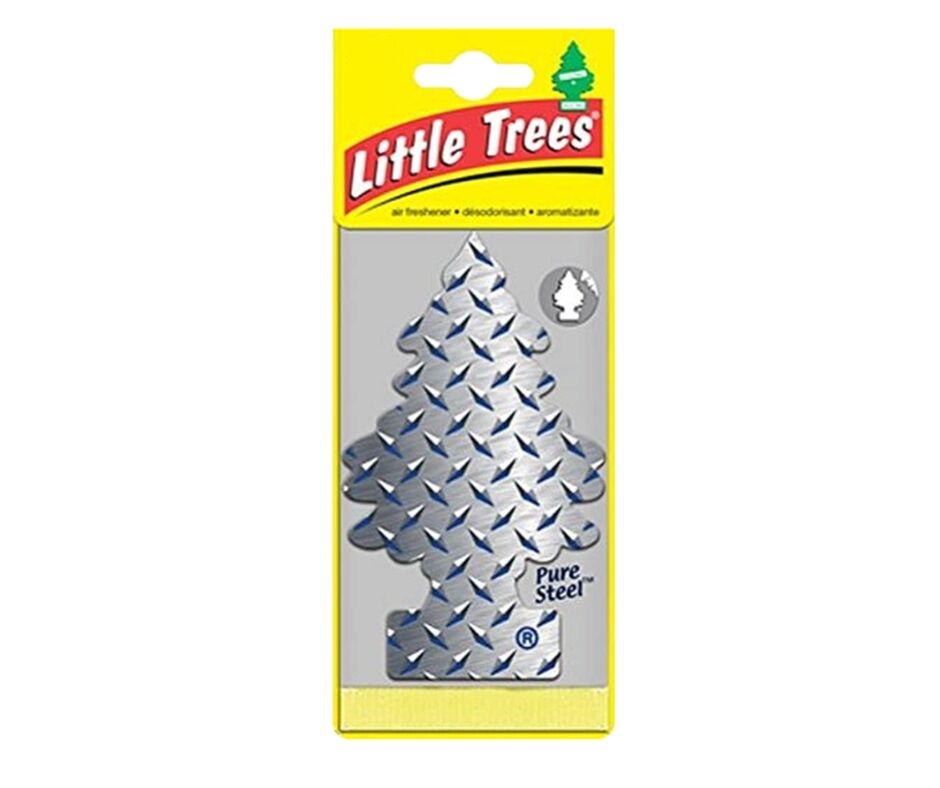Add a bold and modern touch to your space with the Little Trees Pure Steel Air Freshener. Inspired by the clean, crisp scent of polished metal and fresh air, this air freshener delivers a cool and refreshing fragrance. Featuring a unique steel-pattern design in the iconic tree shape, it provides reliable freshness for cars and small spaces.