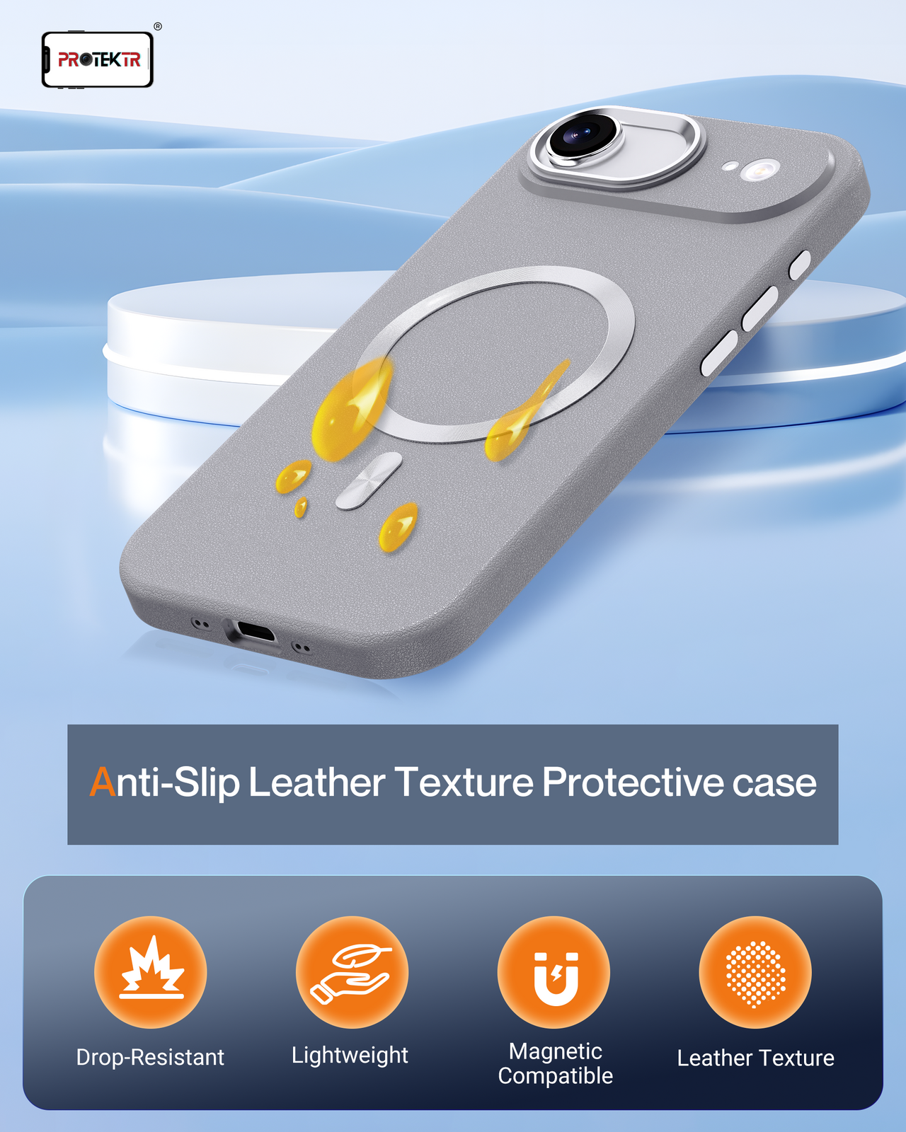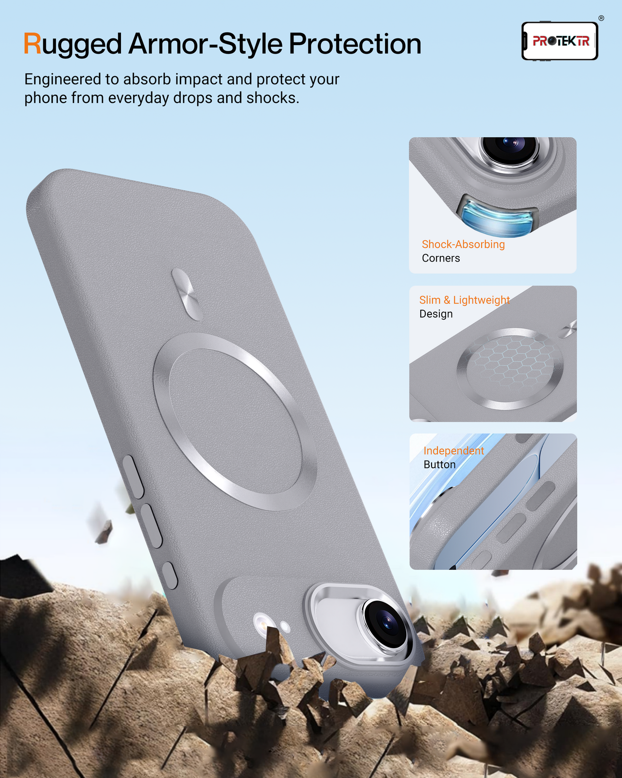 Protect your device with modern minimalism using the PROTEKTR Slate DiscAir Cover, designed specifically for the iPhone Air. Featuring a refined slate-grey textured finish and integrated magnetic alignment, this case delivers a balance of durability, functionality, and sleek everyday style.
