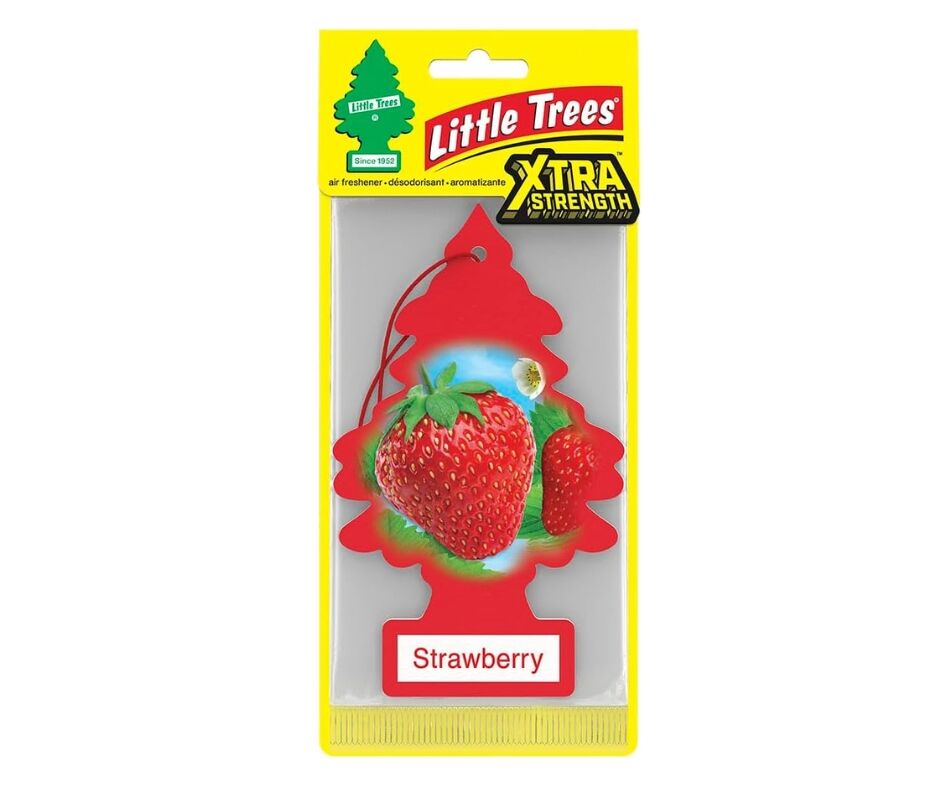 Bring a burst of fruity freshness wherever you go with the Little Trees Strawberry Xtra Strength Air Freshener, delivering powerful long-lasting fragrance in the iconic tree-shaped design.