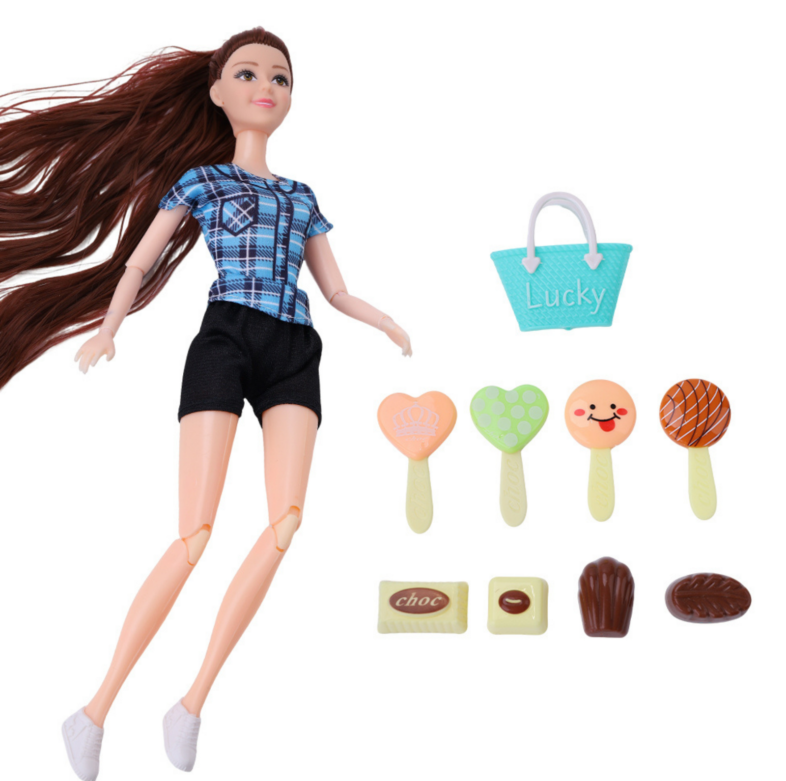• Dessert-Themed Accessories – Includes cute treats like ice creams, cookies, and candy-shaped toys for creative role-play.