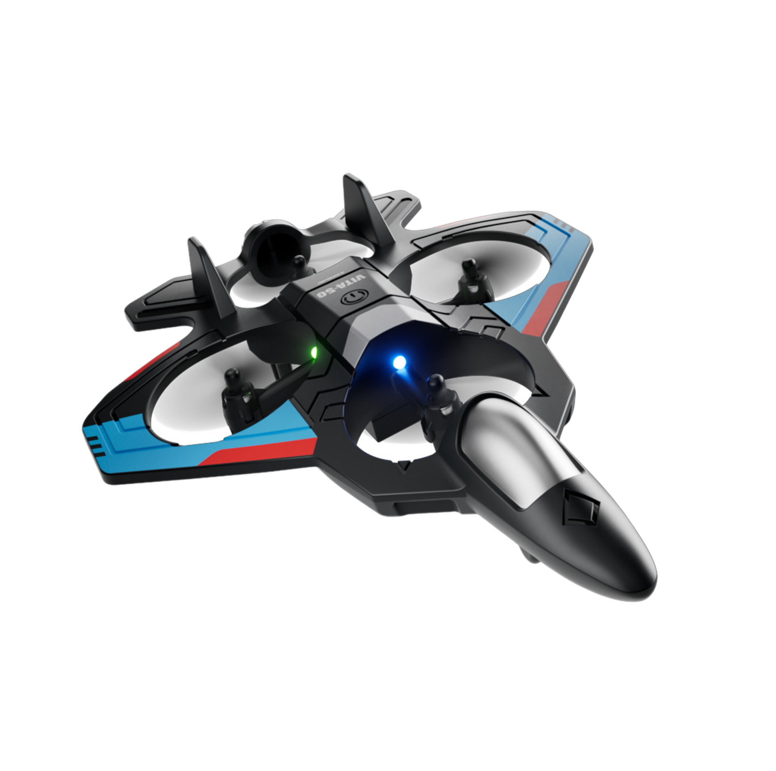 Unleash high-speed aerial thrills with the Thunder Wing Quad Jet—a futuristic 4-axis drone jet that combines the power of quad-prop flight with the sleek design of a fighter aircraft. Perfect for young pilots and drone enthusiasts, this jet delivers stable performance, exciting manoeuvres, and immersive LED effects.