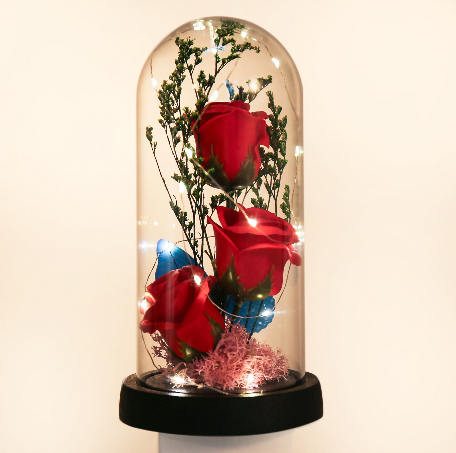 • Premium Acrylic Dome – Clear and durable dome enhances visibility while protecting the roses inside.