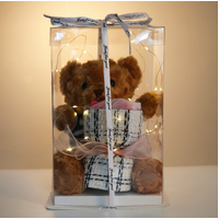 The Twilight Bouquet Teddy is a charming and cozy gift, combining the warmth of a plush teddy bear with the beauty of a floral bouquet, illuminated by soft LED string lights. Available in assorted colours, it’s perfect for expressing love and affection in a delightful way.
