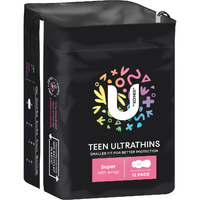 U By Kotex Teen Ultrathin Pads Super Wings | Pack of 12