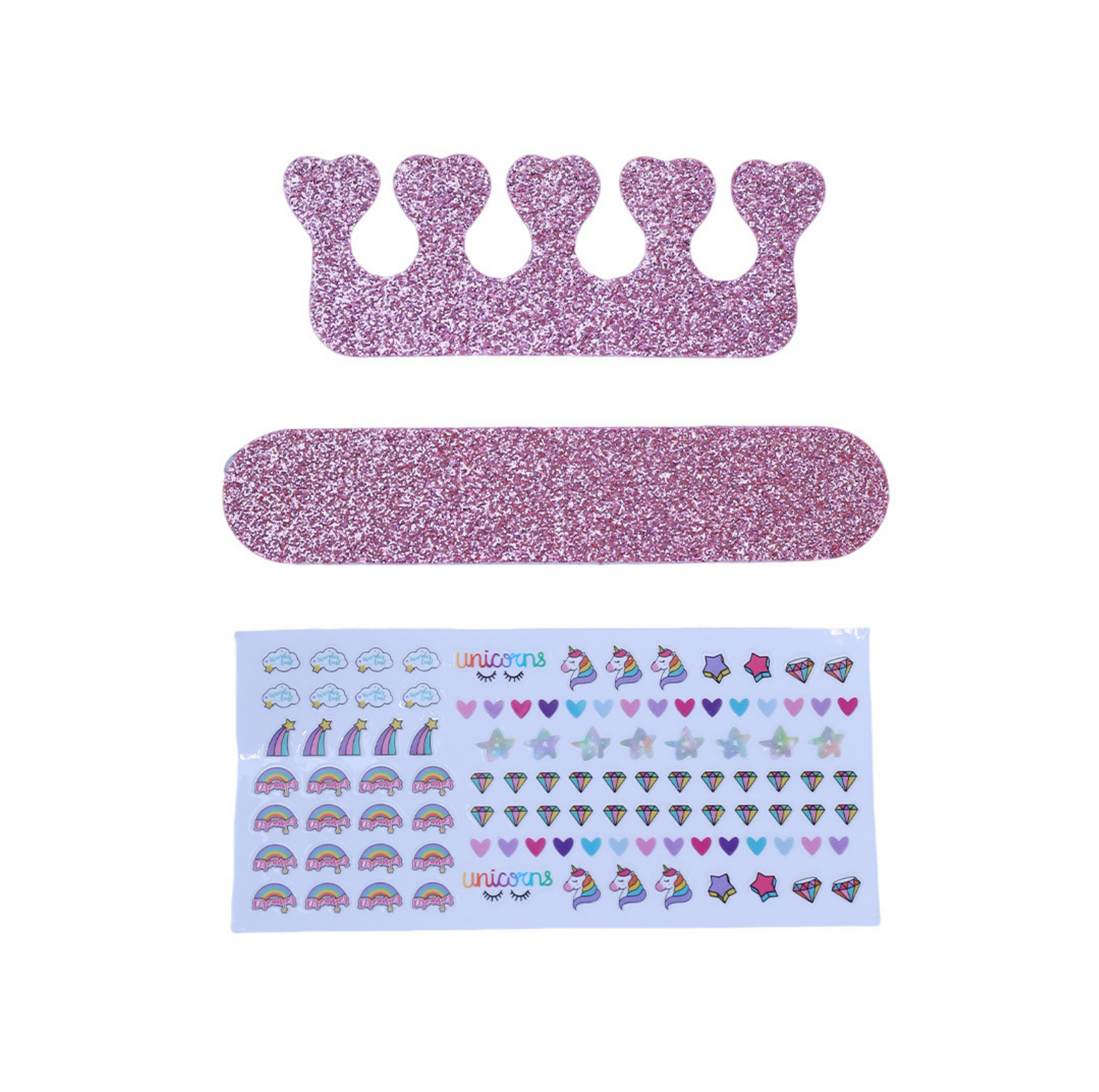 • Toe Separators & Nail File – Fun, glittery accessories for easy pretend manicures.